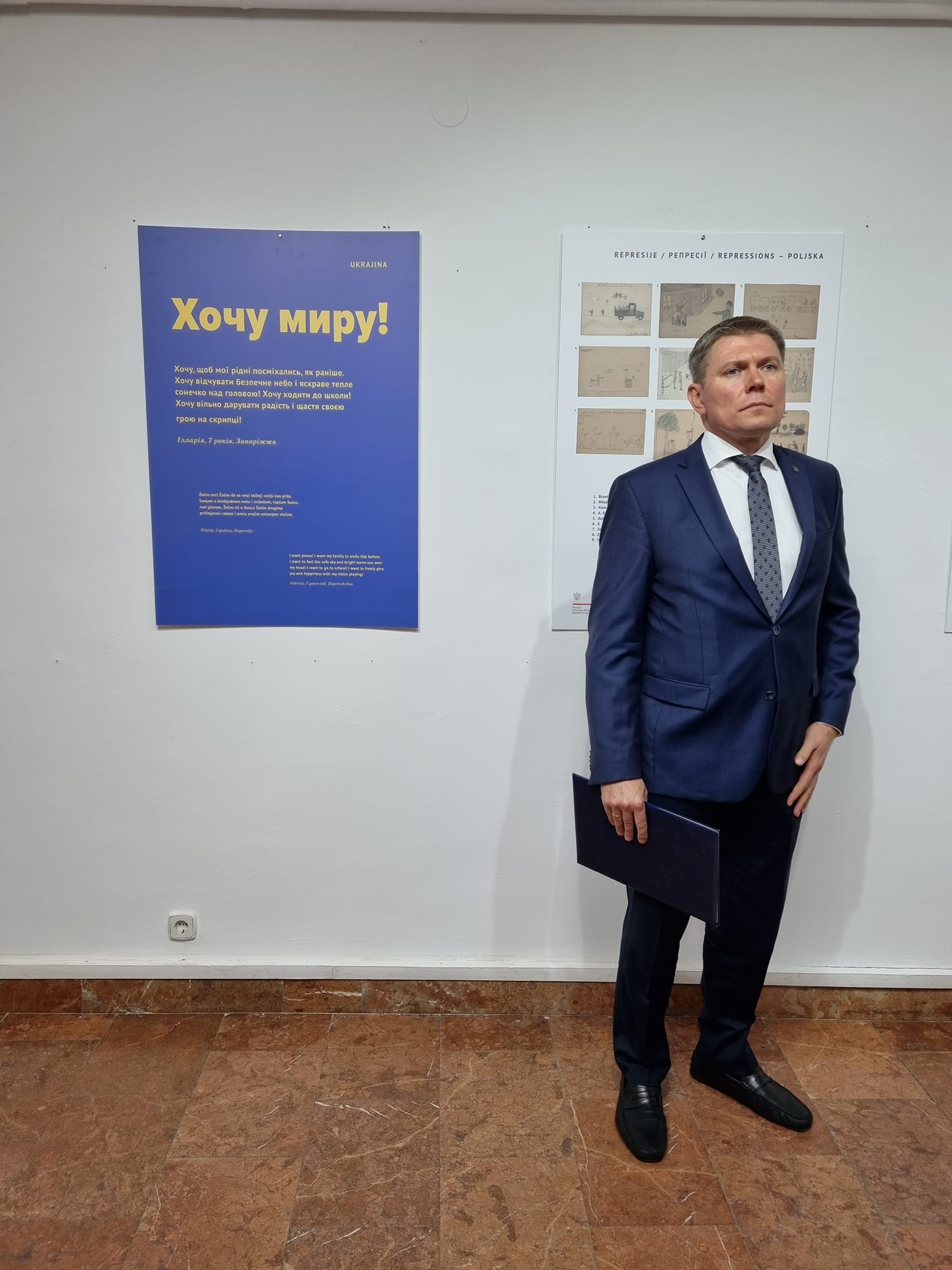 Izložbu su zvanično otvorili ambasador Republike Poljske u BiH Jarosław Lindenberg, otpravnik poslova Ukrajine u BiH Serhii Miniailo, direktor Muzeja ratnog djetinjstva Jasminko Halilović i direktor Muzeja književnosti BiH Šejla Šehabović.