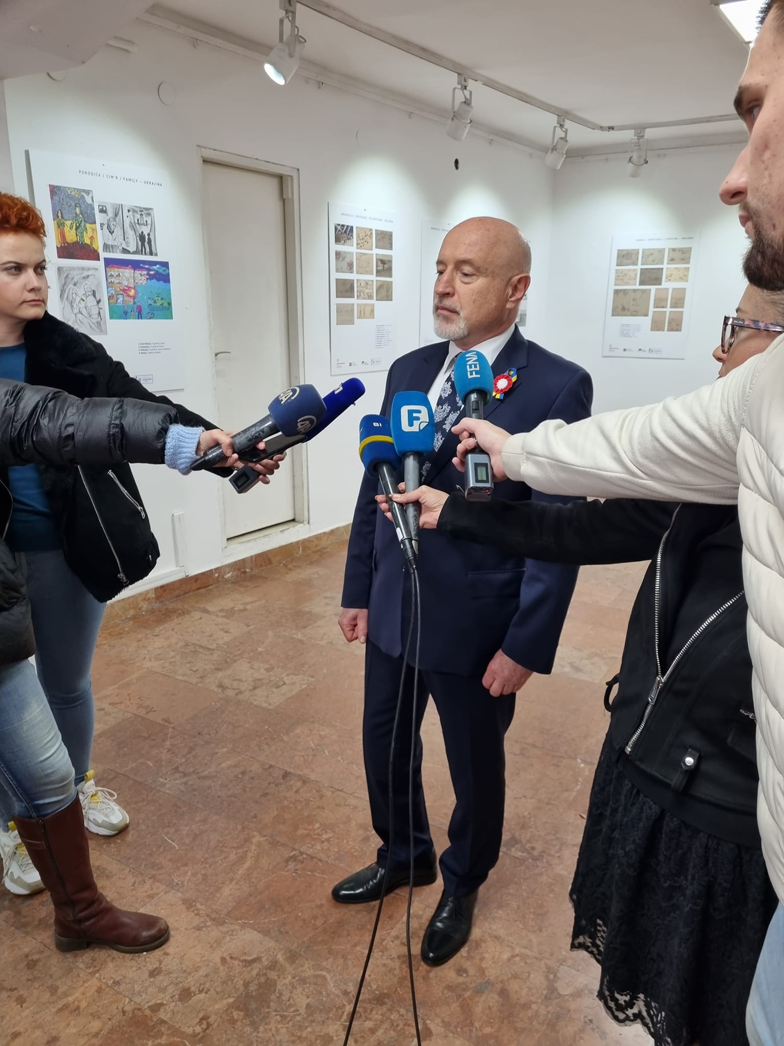 Otpravnik poslova ambasade Ukrajine u BiH Serhii Miniailo izjavio je da su u svakom ratu djeca najmanje sigurna. Kako je kazao, crteži djece, nastali u razmaku od skoro 80 godina, podsjećaju na stradanja i opisuju osjećaje djece.