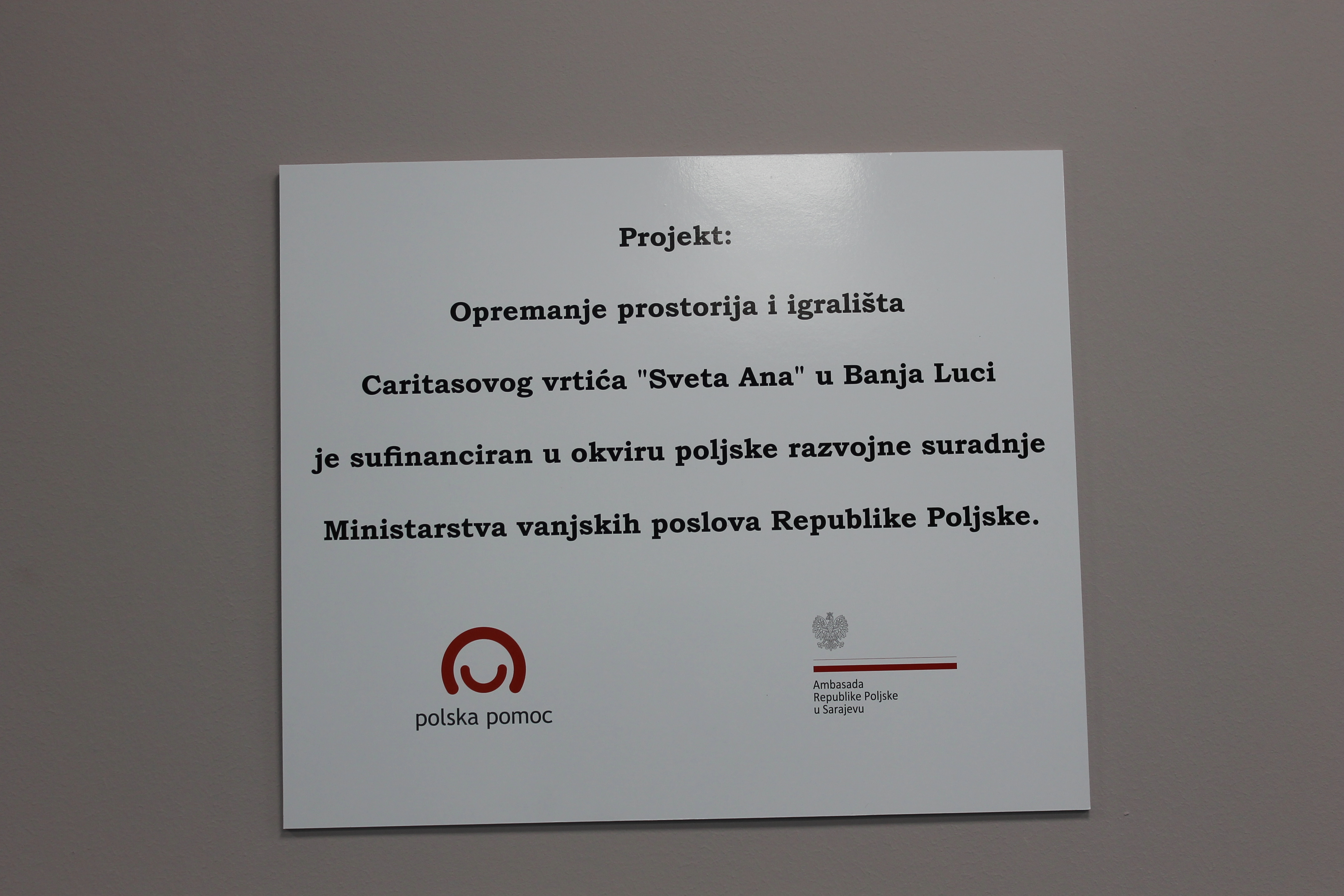 Podczas krótkiego przemówienia dyrektor Caritasu Banja Luka ks. Aničić przede wszystkim podziękował Polsce i Ambasadzie RP w Sarajewie za pomoc i donację. Podkreślił, że placówka przedszkolna, która już wkrótce rozpocznie działalność, będzie otwarta na wszystkie narodowości i wyznania, a „Caritas” w Banja Luce, tak w tym, jak i w innych realizowanych przez siebie projektach pomocowych, wspiera różnorodność narodową i religijną wszystkich swoich beneficjentów.