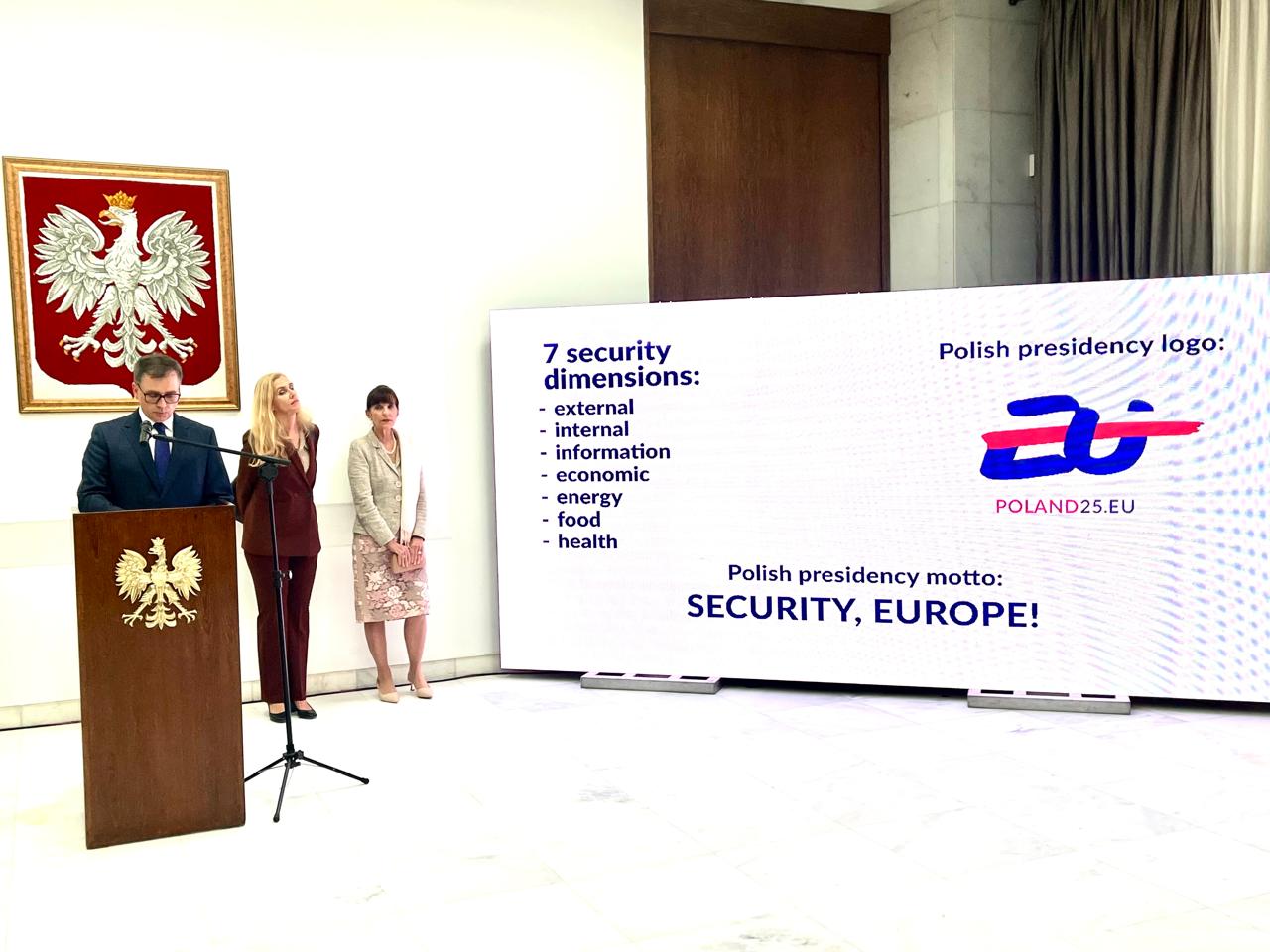 Sr. Cieszkowski no seu discurso apresentou as prioridades da Presidência polonesa, explicando que sob o lema "Segurança, Europa!" o nosso objetivo principal será fortalecer a Europa no aspecto externo e interno e garantir segurança em áreas chave para a vida dos europeus – esfera de informação, economia, energia, alimentos e saúde.