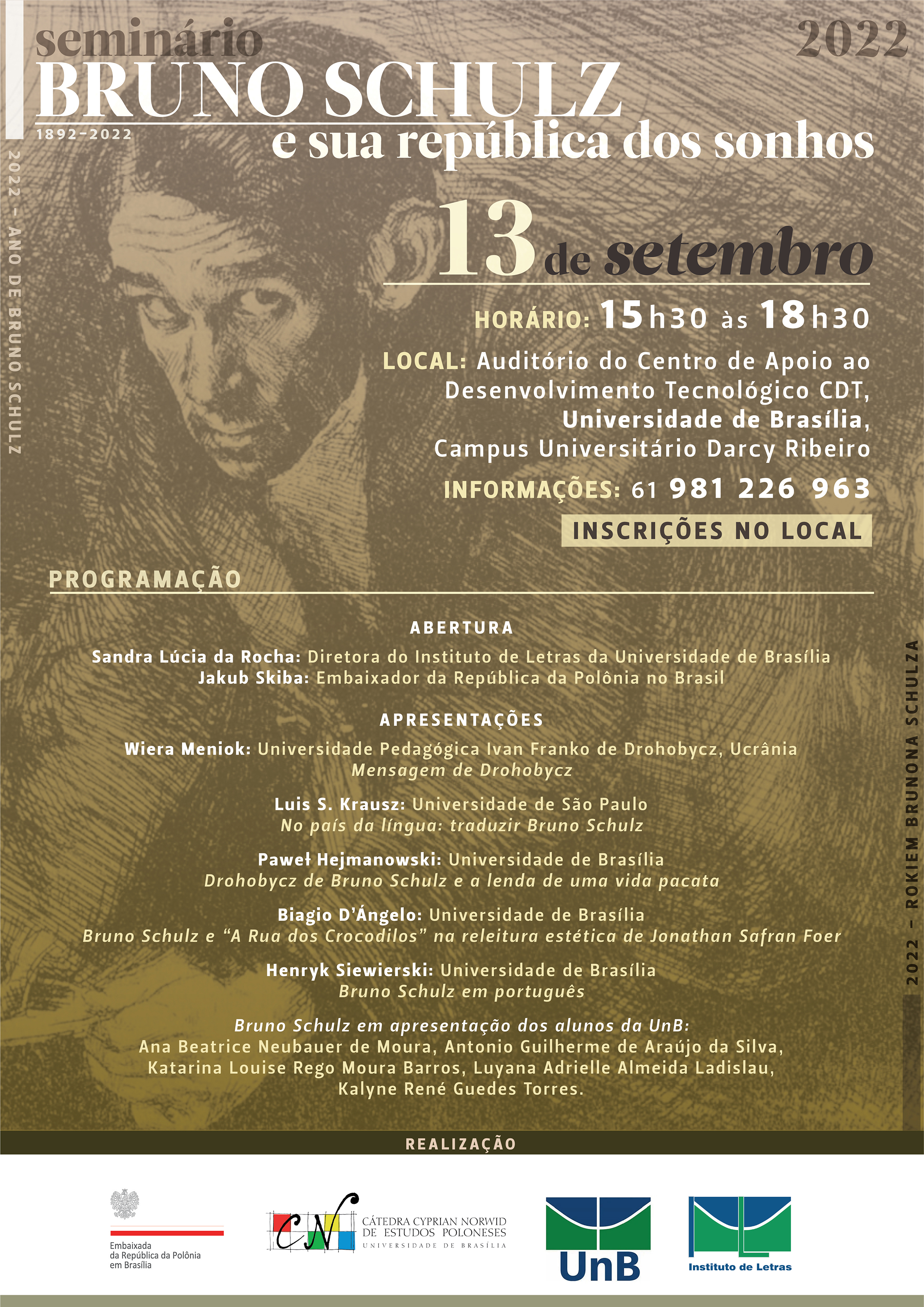 W dniach 13-14 września 2022 r., z inicjatywy Ambasady oraz przy wsparciu Uniwersytetu w Brasílii, odbyły się w stolicy Brazylii „Dni Brunona Schulza”.
