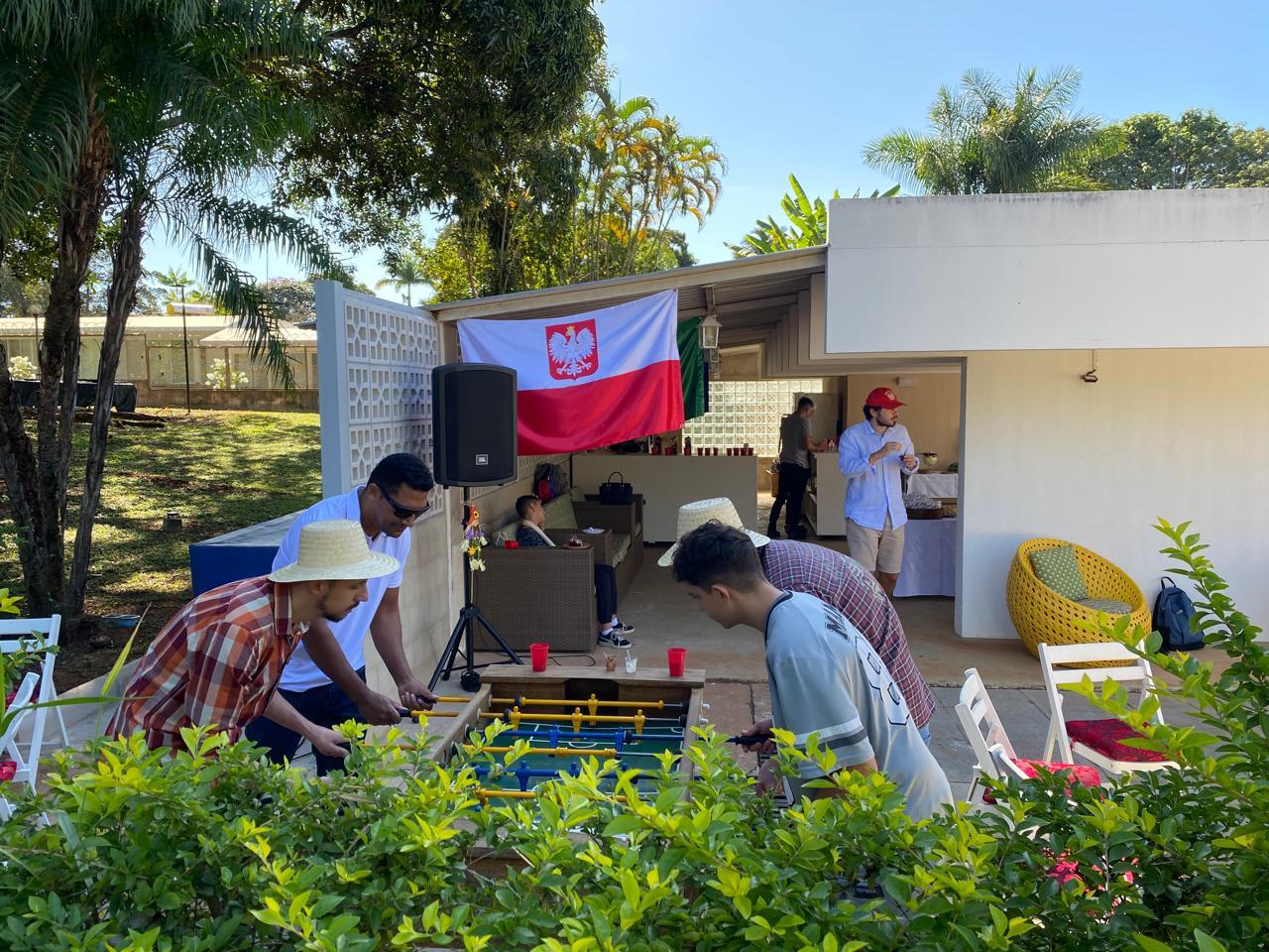 Dzieci polonijne z okręgu konsularnego Ambasady RP w Brasilii w sobotę 22 czerwca 2024 r. wspólnie z rodzicami i pracownikami polskiej placówki dyplomatycznej bawiły się na pikniku zorganizowanym przez Konsula RP w Brasilii, Piotra Ambroziaka. W wydarzeniu wzięła udział Ambasador RP w Brasilii, Bogna Janke. Wśród atrakcji były dmuchane zjeżdżalnie, fotobudka, w której można było zrobić pamiątkowe zdjęcie oraz przysmaki przygotowane przez naszą kuchnię. Piknik odbył się w stylistyce "festas junina" - ludowego święta czerwcowego obchodzonego w całej Brazylii. Uczestnicy wkładają na głowy słomiane kapelusze, ubierają kraciaste koszule i ozdabiają otoczenie plonami rolnymi.