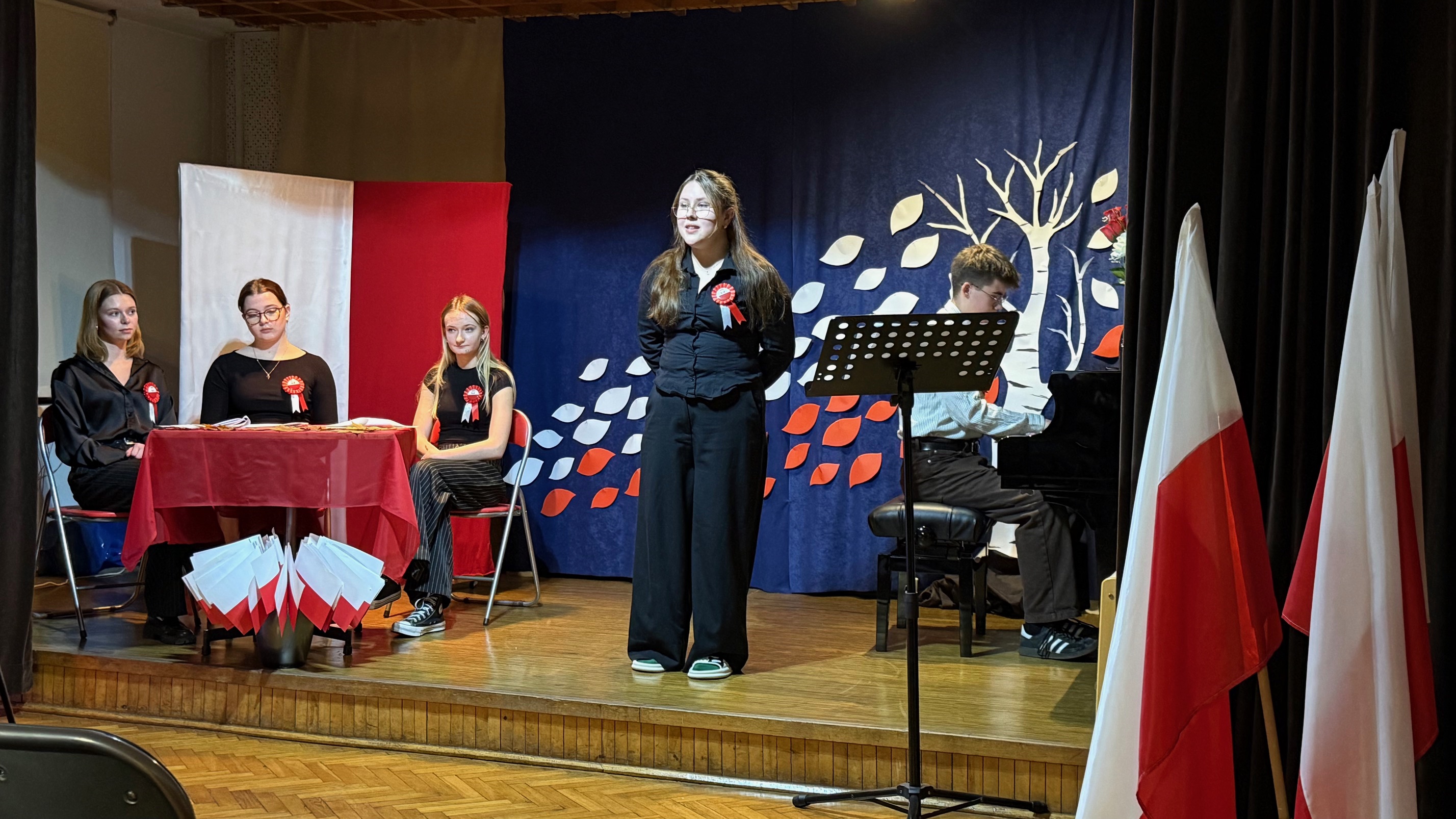 Scenę udekorowano w barwach narodowych – bielą i czerwienią – oraz artystyczną dekoracją przedstawiającą drzewo, symbol wzrastania i trwania. Występujący wychowankowie, ubrani odświętnie i oznaczeni kokardami narodowymi, z wielkim zaangażowaniem oddali ducha poezji Słonimskiego, podkreślając jej aktualność i emocjonalną głębię.