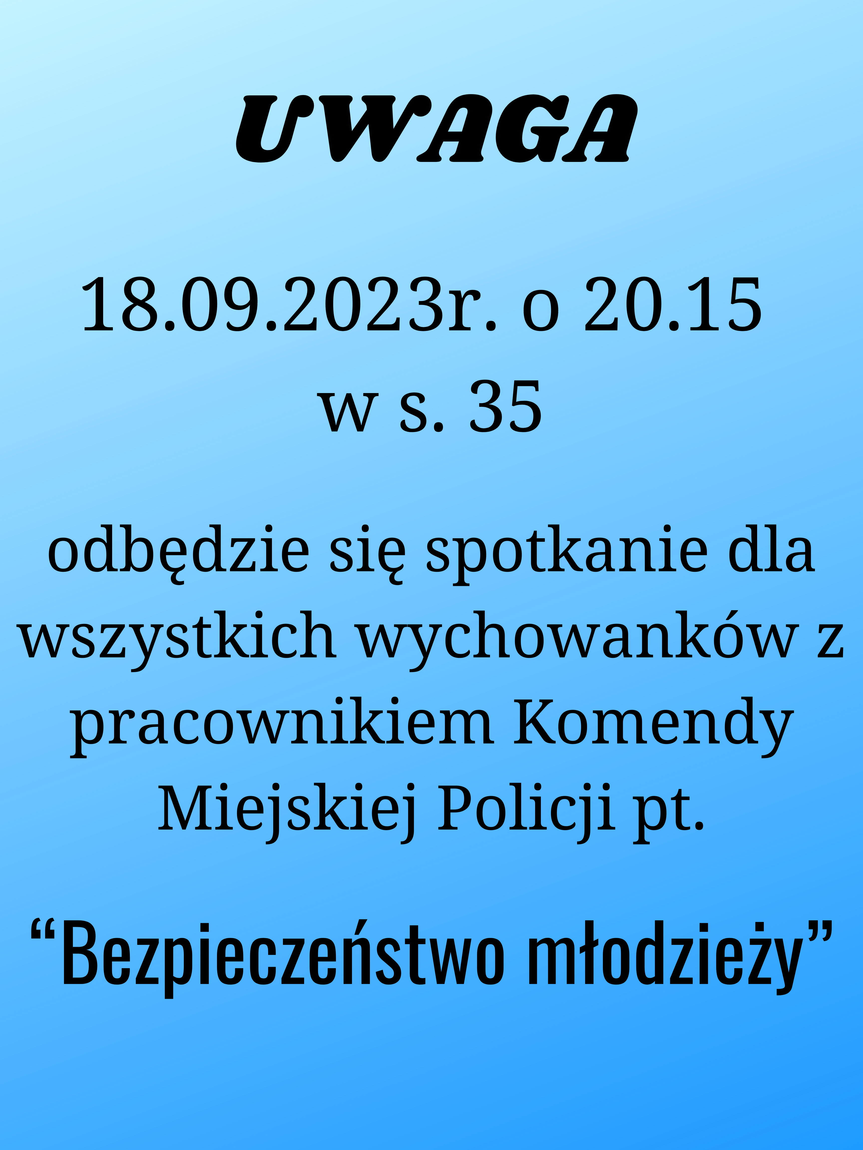 Spotkanie wychowanków z pracownikiem Komendy Miejskiej Policji 14.09.2023 Zdjęcia (1) Pokaż zdjęcie 1 z galerii.