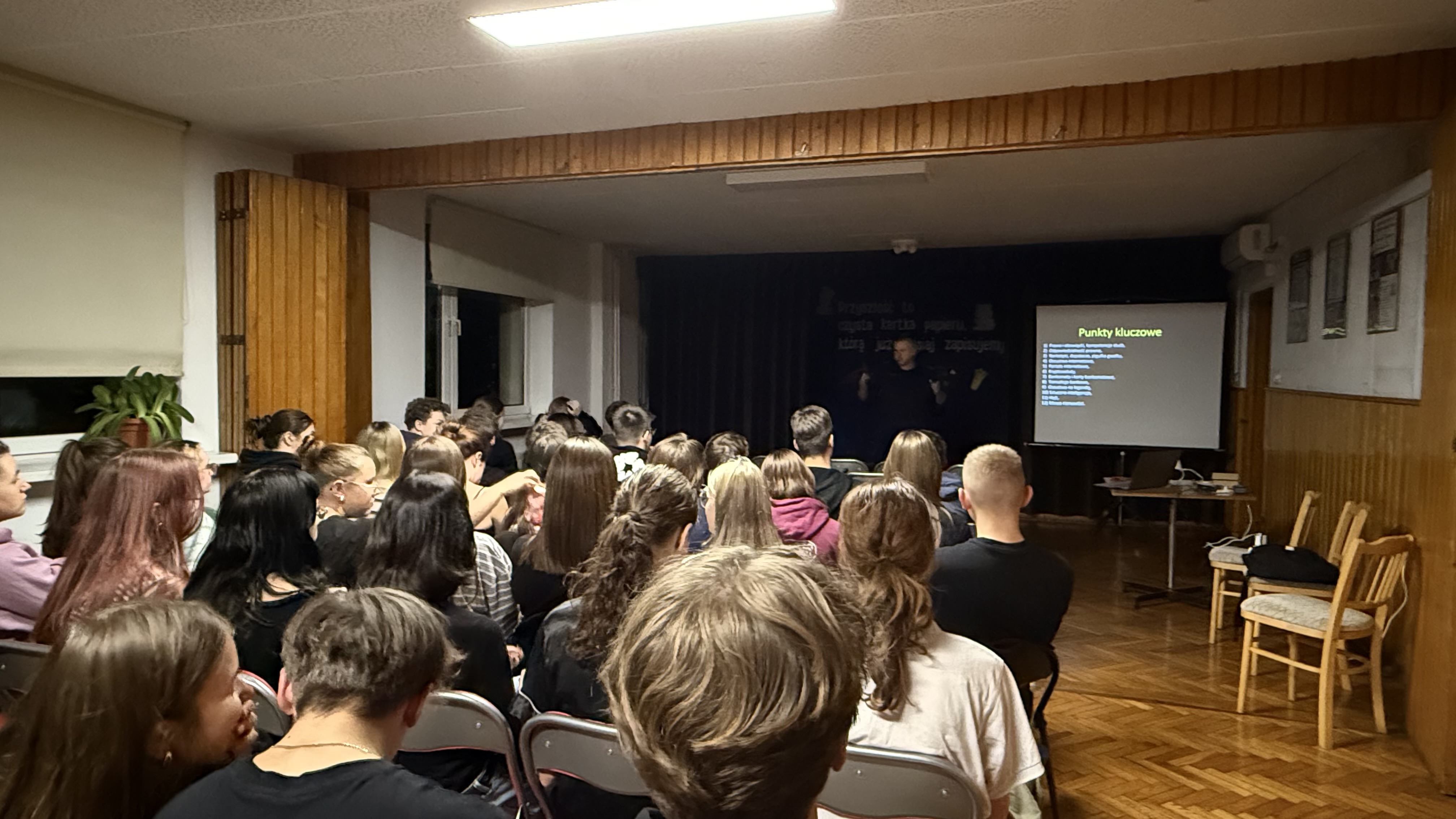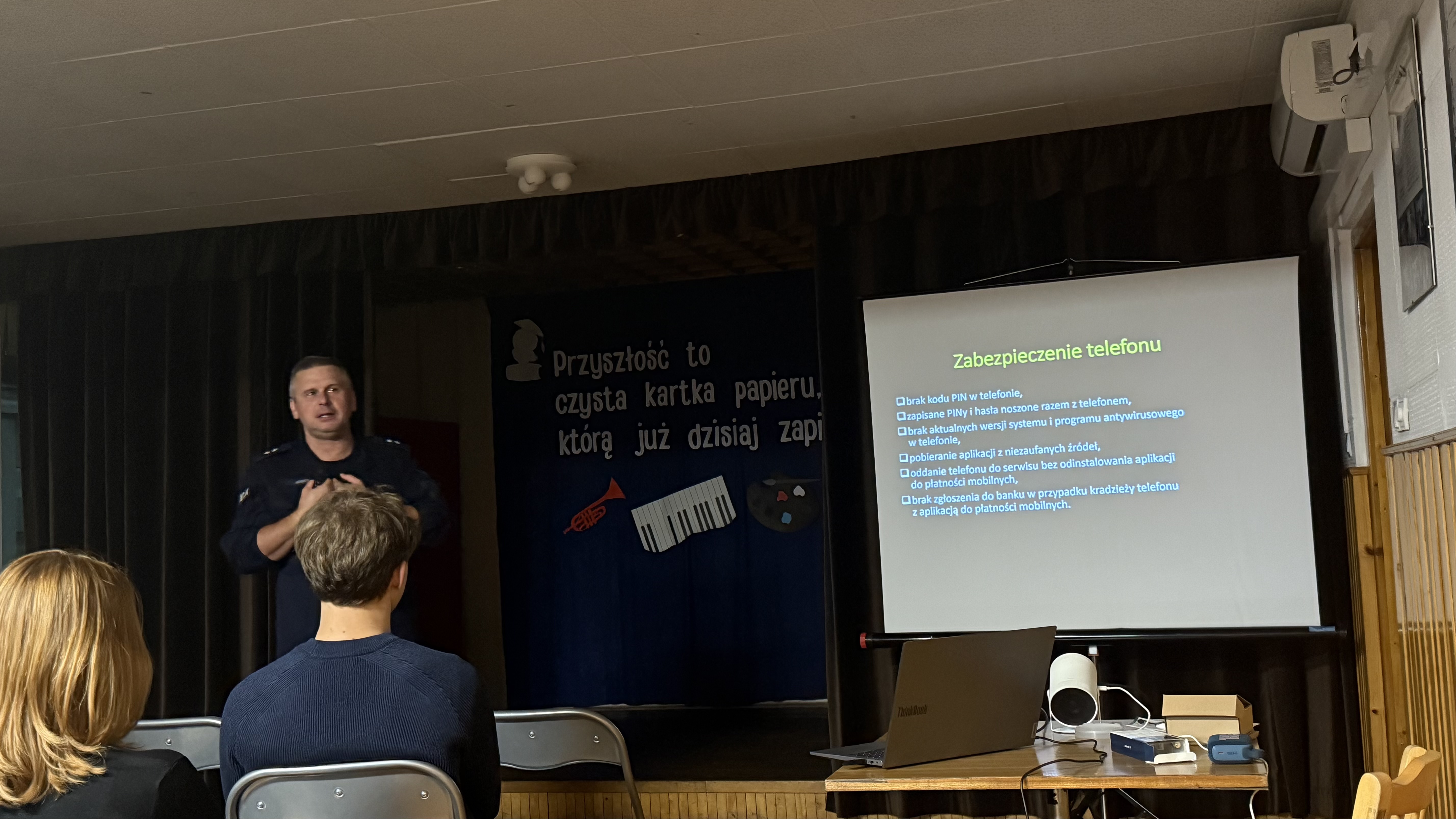 Prowadzący dużą uwagę skierował na najczęściej spotykane oszustwa internetowe, takie jak fałszywe ogłoszenia sprzedaży i SMS-y czy płatności online. Omówił ponadto zasady bezpiecznego korzystania z mediów społecznościowych – znaczenie ochrony prywatności, ostrożności przy przyjmowaniu zaproszeń od nieznanych osób oraz publikowaniu osobistych zdjęć i informacji.