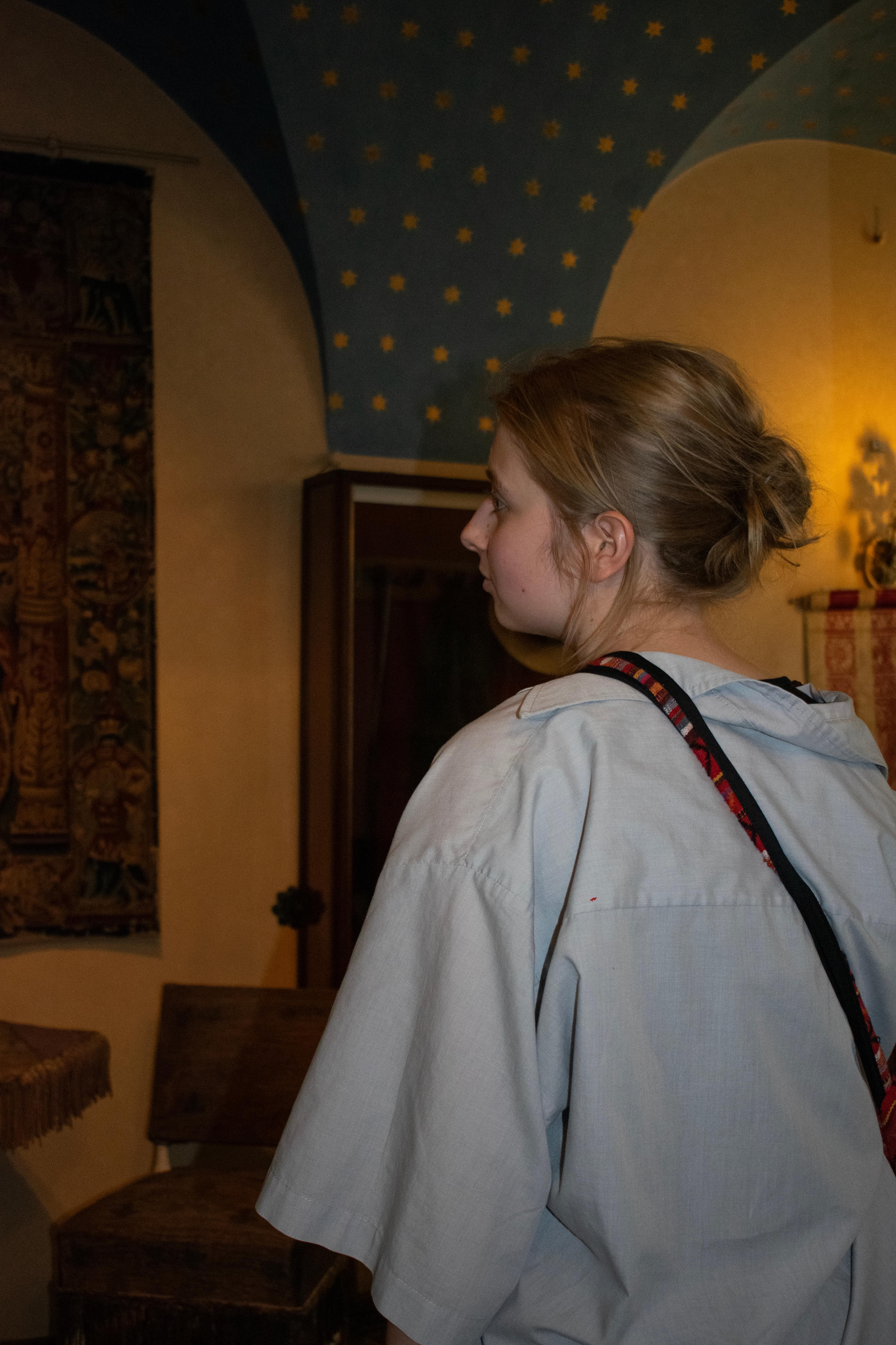 Frontową ścianę rodzinnego domu Jana Matejki ozdabia płaskorzeźba z jego popiersiem, a wystawy dzieł malarskich i pamiątek po artyście rozlokowano na kilku piętrach. Pobyt w muzeum wychowanki bursy rozpoczęły od przejścia przez mały, ale niezwykle klimatyczny dziedziniec neobarokowy prowadzący do oficyny. W dawnej jadalni dziewczęta podziwiały liczne portrety członków rodziny malarza oraz wyeksponowaną w serwantkach rodową biżuterię. Sprawdziły też jakim pierścieniem zaręczynowym Matejko zachęcał Teodorę z Giebułtowskich do małżeństwa. Wychowanki zajrzały również do salonu oraz sypialni państwa Matejków – zwanej pokojem pod gwiazdami, bowiem sufit pokrywa tu gwiaździste niebo w kolorze niebieskim. Pomieszczenia te utrzymywane są od ponad stu lat w prawie niezmiennym stanie. Zachowały się żyrandole, tkaniny na ścianach, oryginalna podłoga oraz meble zakupione przez malarza w Wenecji.