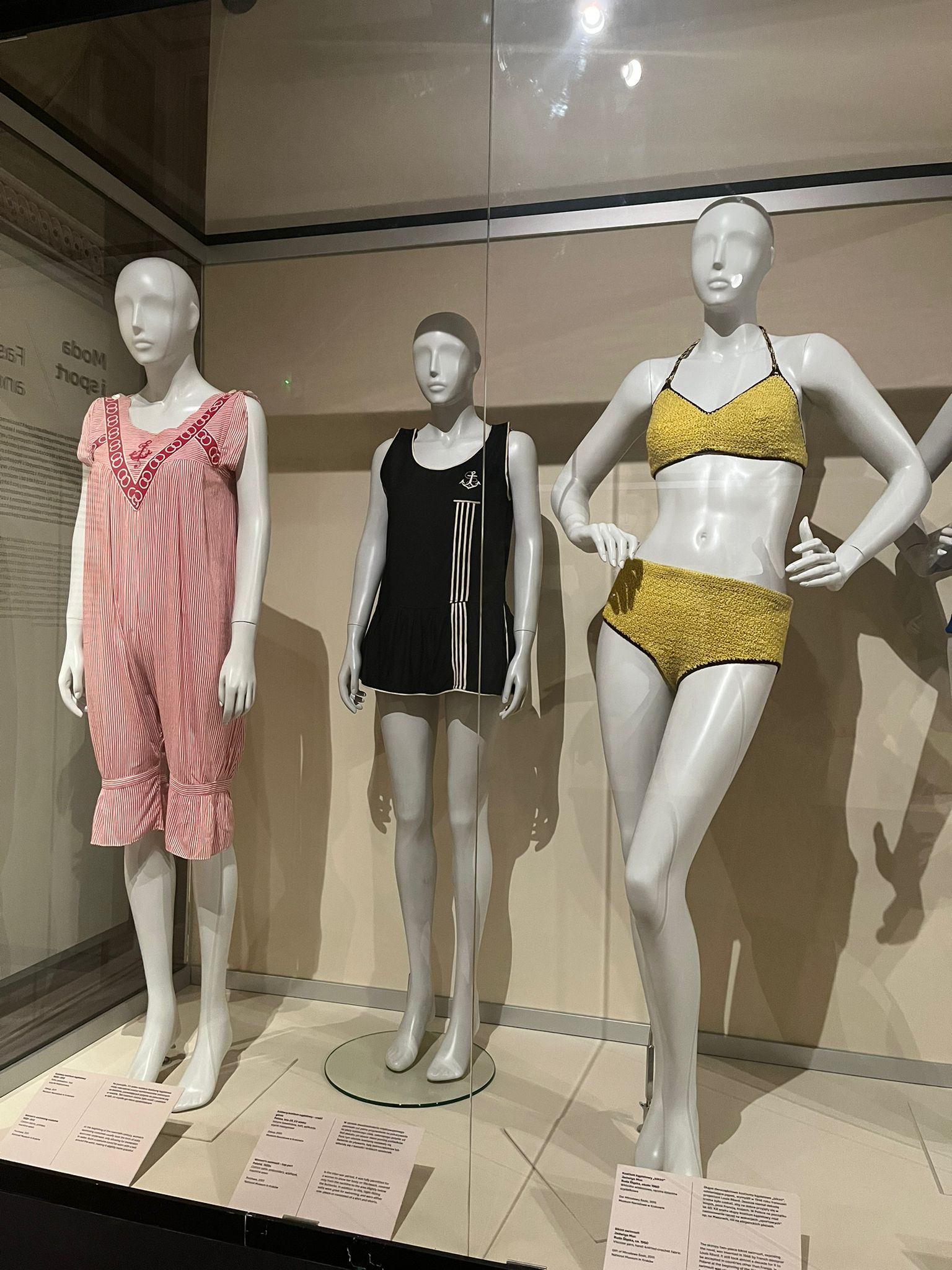 Zgromadzone na ekspozycji elementy odzieży, szkice i fotografie doskonale ilustrują ewolucję mody, zmieniające się trendy, materiały i wzory oraz ukazują kontrast między dawnymi a współczesnymi ubiorami sportowymi. Wychowanki zobaczyły jak wyglądały damskie pumpy na rower z końca XIX w. i komplet dzianinowy do gry w golfa z lat trzydziestych XX w. Ich uwagę przykuły także buty z łyżwami oraz kombinezony i kurtki narciarskie. Najwięcej emocji wzbudziły jednak stroje kąpielowe – od wełnianych po wykonane z tkanin „oddychających”, jak również strój do gimnastyki z czasów PRL.