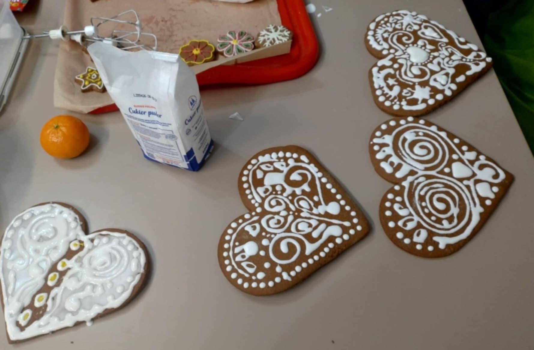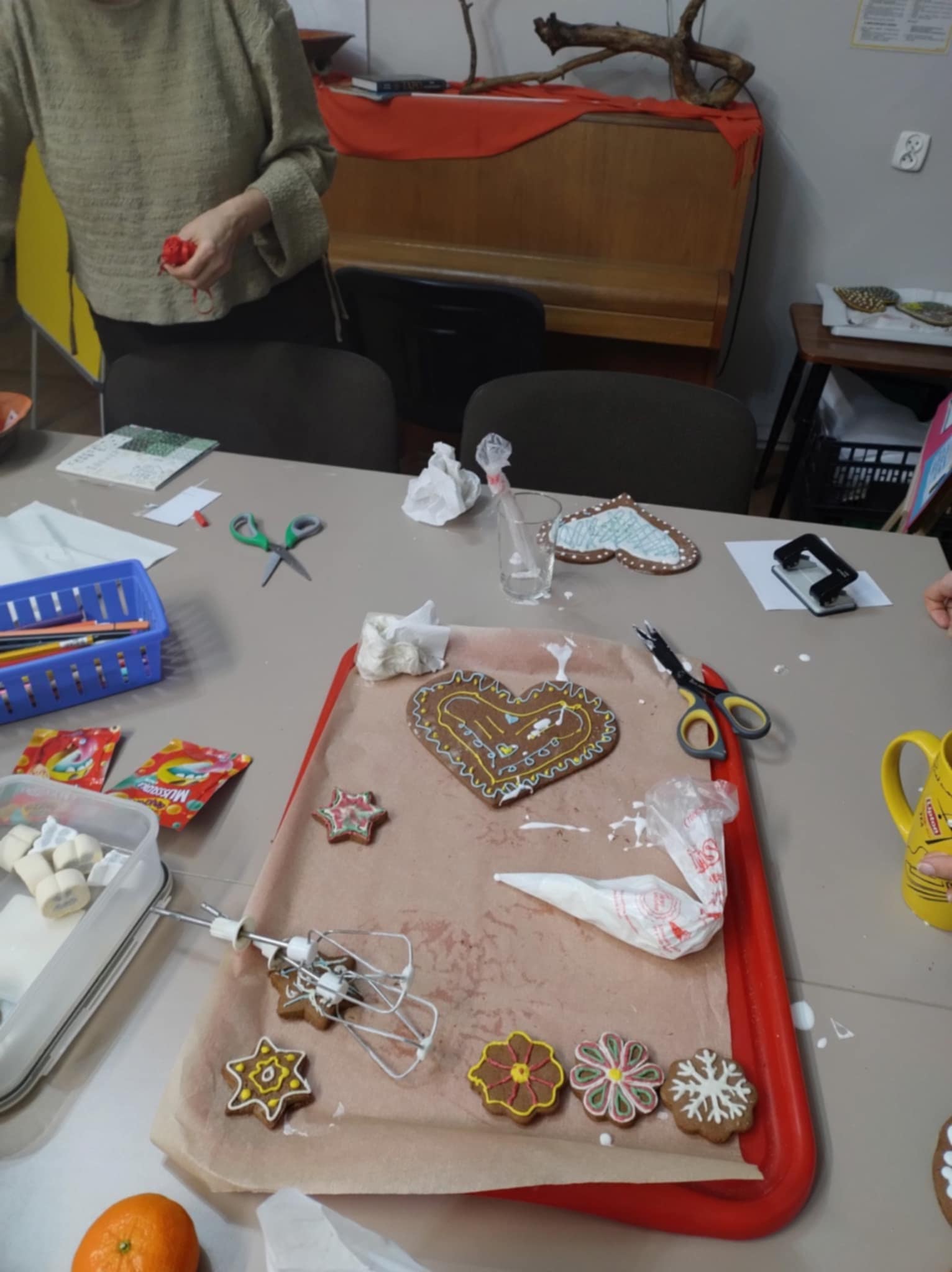 Tu pierwsze cudeńka - pierniki własnoręcznie zagniecione, upieczone i ozdobione przez dziewczyny z bursy - nic tylko brać!