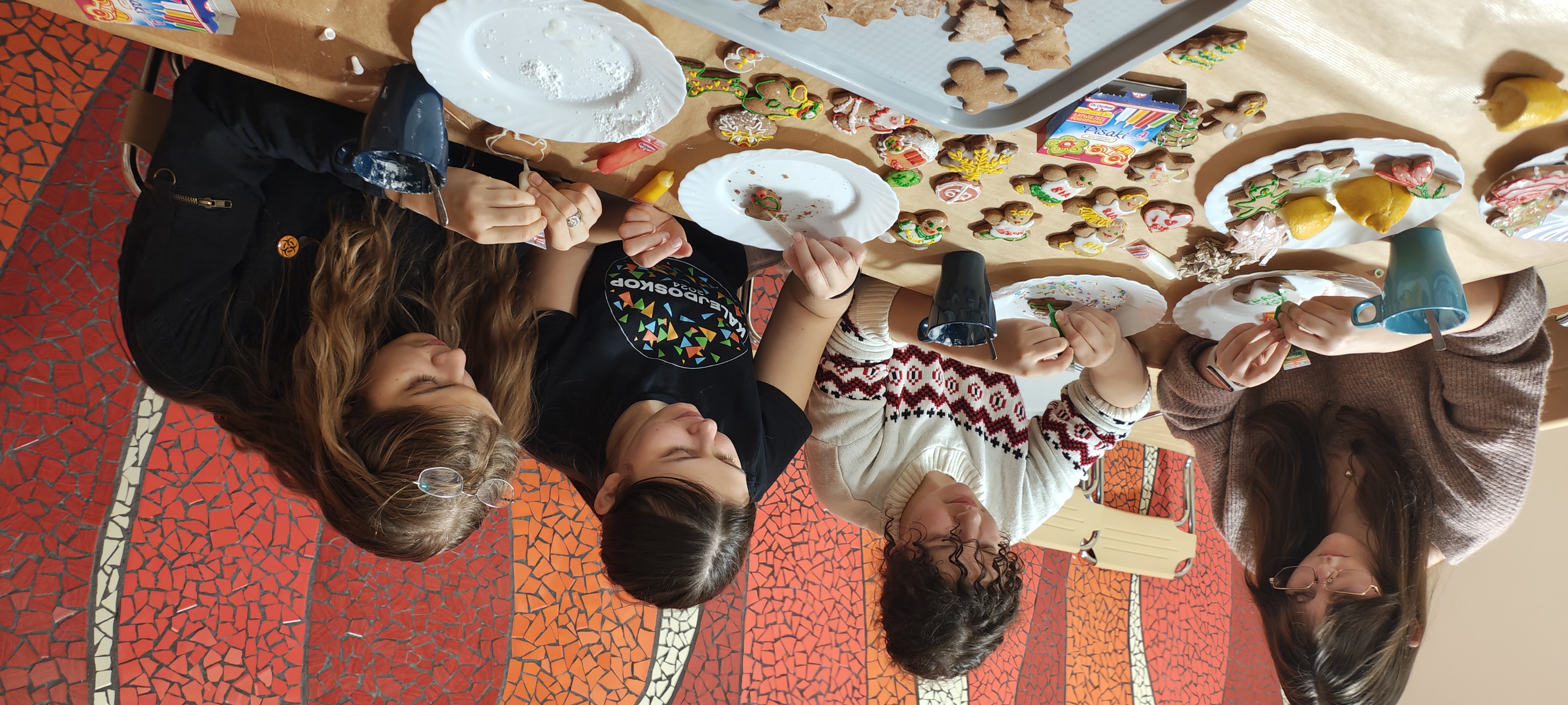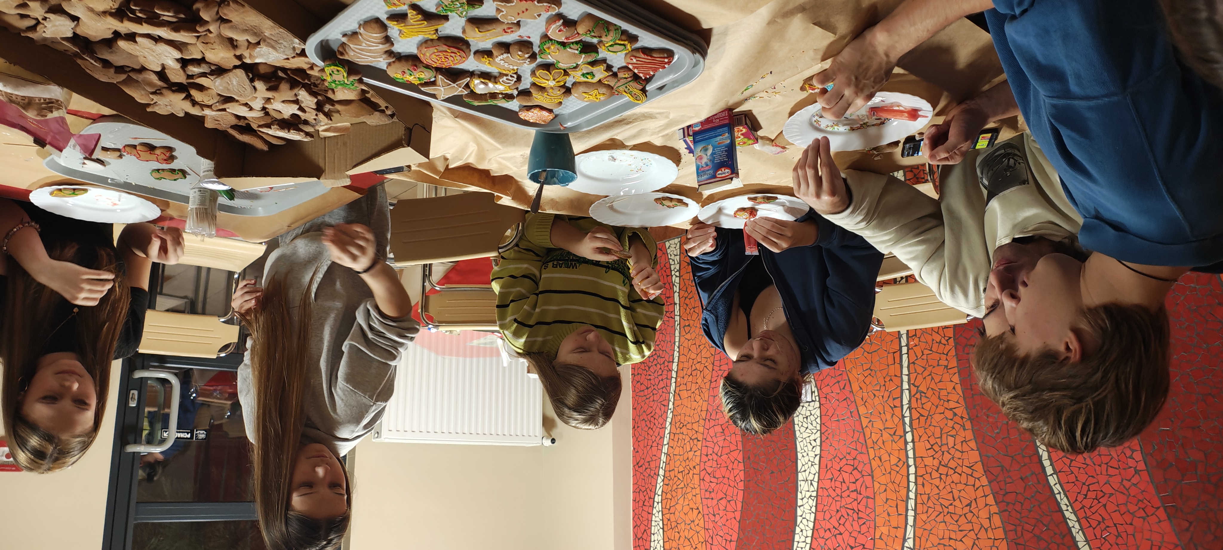 4 grudnia młodzież pod okiem wychowawców i pań z kuchni zagniatała ciasto, wycinała przeróżne kształty i wypiekała pierniczki. A 10 i 11 grudnia przyszedł czas na dekorowanie. Kolorowe pisaki, posypki i lukier szybko znikały, a na tacach przybywało udekorowanych pierniczków. Zgodnie z pielęgnowaną przez nas tradycją, ozdobione wypieki były miłym dodatkiem do wigilijnej kolacji.