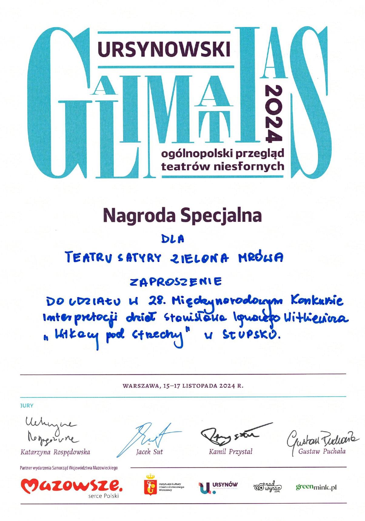 A co otrzymaliśmy? Robert Kaczorowski - Nagrodę dla Najlepszego Reżysera, natomiast Teatr - Nagrodę Specjalną, czyli zaproszenie do udziału w 28. Międzynarodowym Konkursie Interpretacji Dzieł Stanisława Witkiewicza "Witkacy pod Strzechy" w Słupsku! , który odbędzie się we wrześniu 2025 roku.