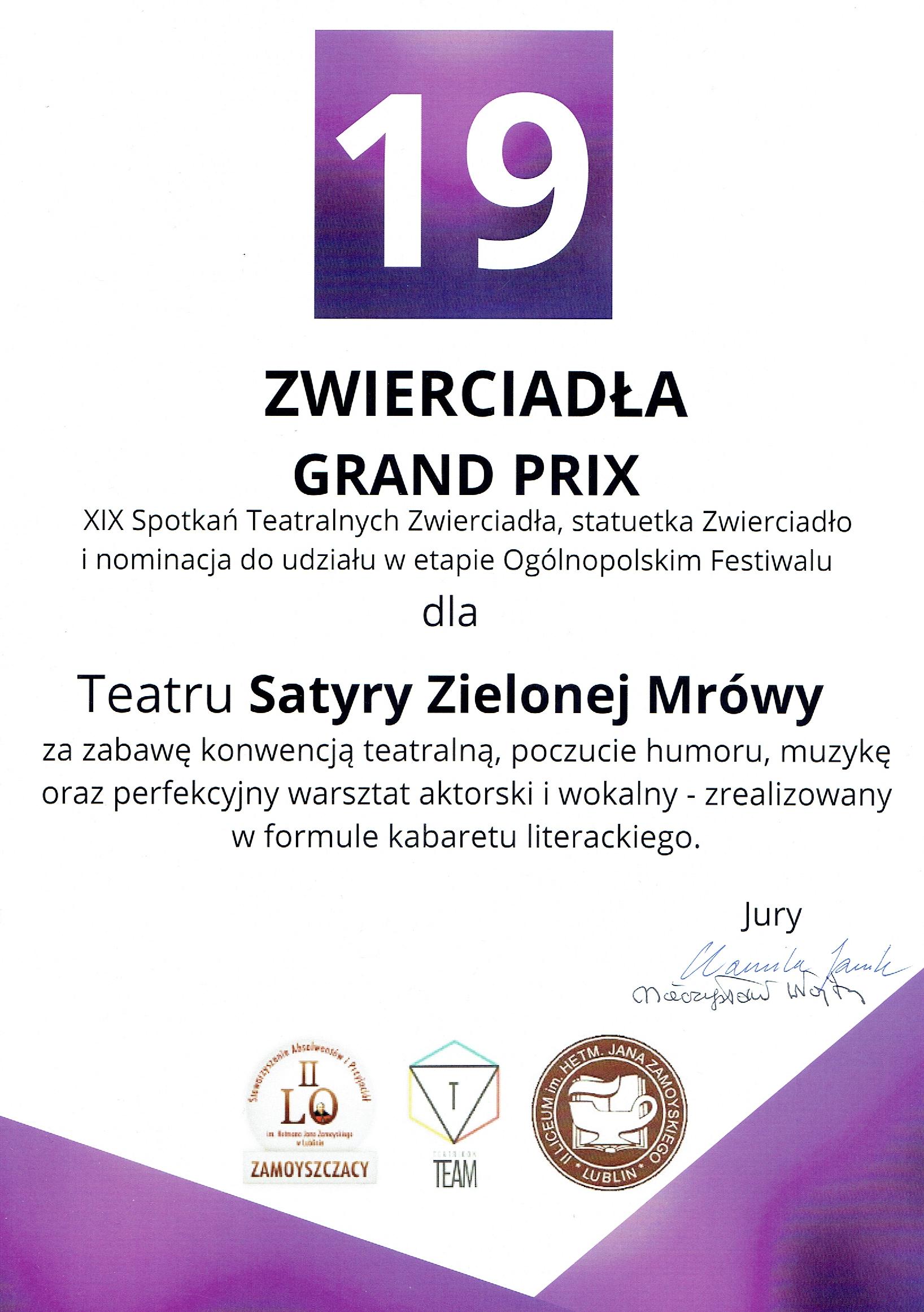 Grand Prix ZWIERCIADEŁ dla Teatru Satyry Zielona Mrówa