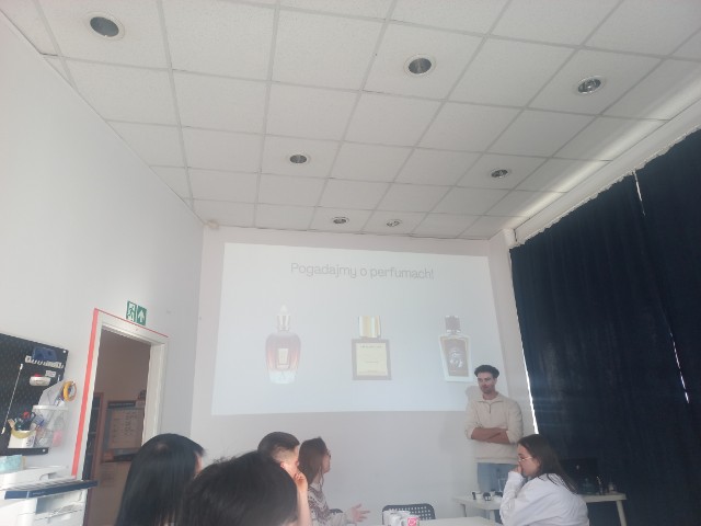 Z możliwości jakie daje przestrzeń młodych skorzystał wychowanek BSA – Michał, który podczas ,,czwartkowej herbatki” w sposób spektakularny poprowadził warsztaty perfumeryjne. Uczestnicy (również młodzież z naszej Bursy) mieli okazję zanurzyć się w fascynujący świat zapachów – od podstaw teoretycznych, po praktyczne tworzenie własnych akordów. Spotkanie rozpoczęło się od swobodnej rozmowy o perfumach – co nas w nich porusza, jak je odbieramy i czym tak naprawdę są. Następnie Michał przybliżył uczestnikom strukturę piramidy zapachowej oraz zasady właściwej analizy zapachów. Wychowanek omówił główne rodziny zapachowe, po czym przyszedł czas na praktykę – każdy miał okazję poznać i powąchać wybrane molekuły zapachowe i surowce, począwszy od składników syntetycznych, przez nuty cytrusowe, kwiatowe, aż po intensywniejsze tony zwierzęce i orientalne. Kolejnym etapem była krótka prezentacja procesu tworzenia perfum oraz wyjaśnienie, czym są akordy zapachowe i jak się je buduje. Część warsztatowa skoncentrowała się na wspólnym tworzeniu klasycznego akordu ,,bursztynu” na bazie labdanum, benzoesu i waniliny. Uczestnicy – pod okiem Michała – eksperymentowali z dodatkami takimi jak kardamon, szafran, różne żywice i cytrusy, tworząc własne, unikalne wariacje zapachowe. Na zakończenie Michał zaprezentował swoje autorskie kompozycje oraz wybrane zapachy od innych polskich, niezależnych twórców perfum.