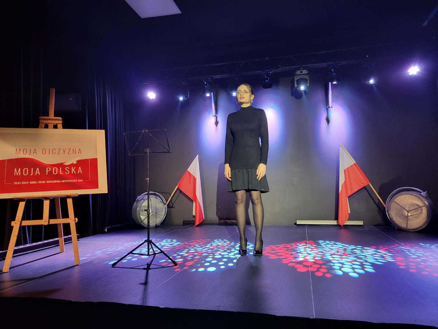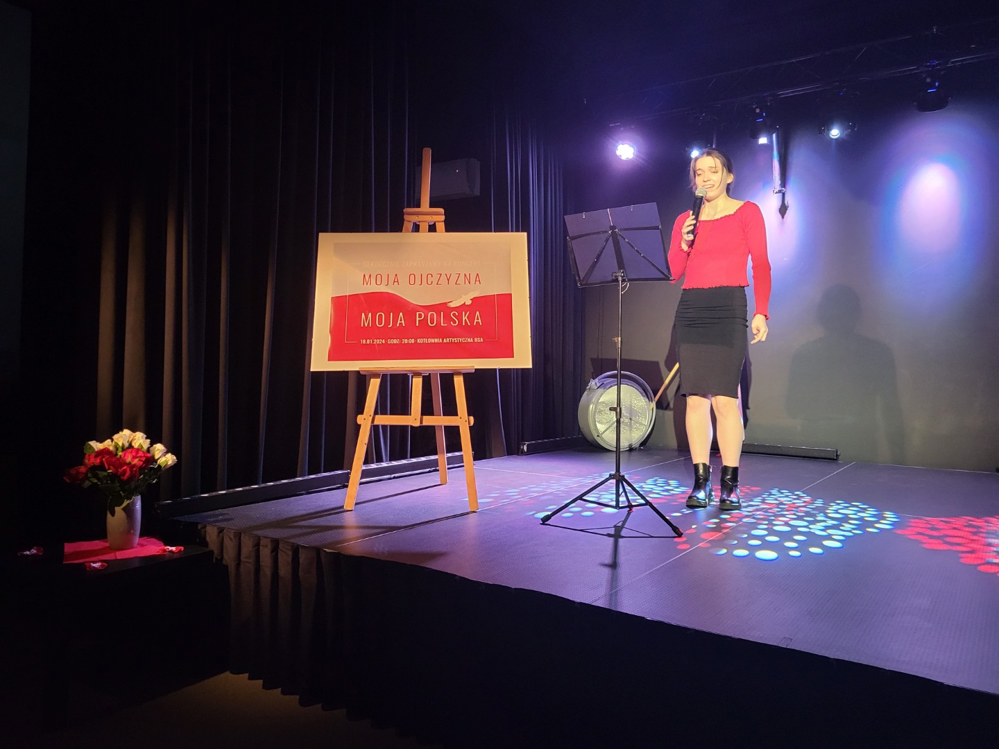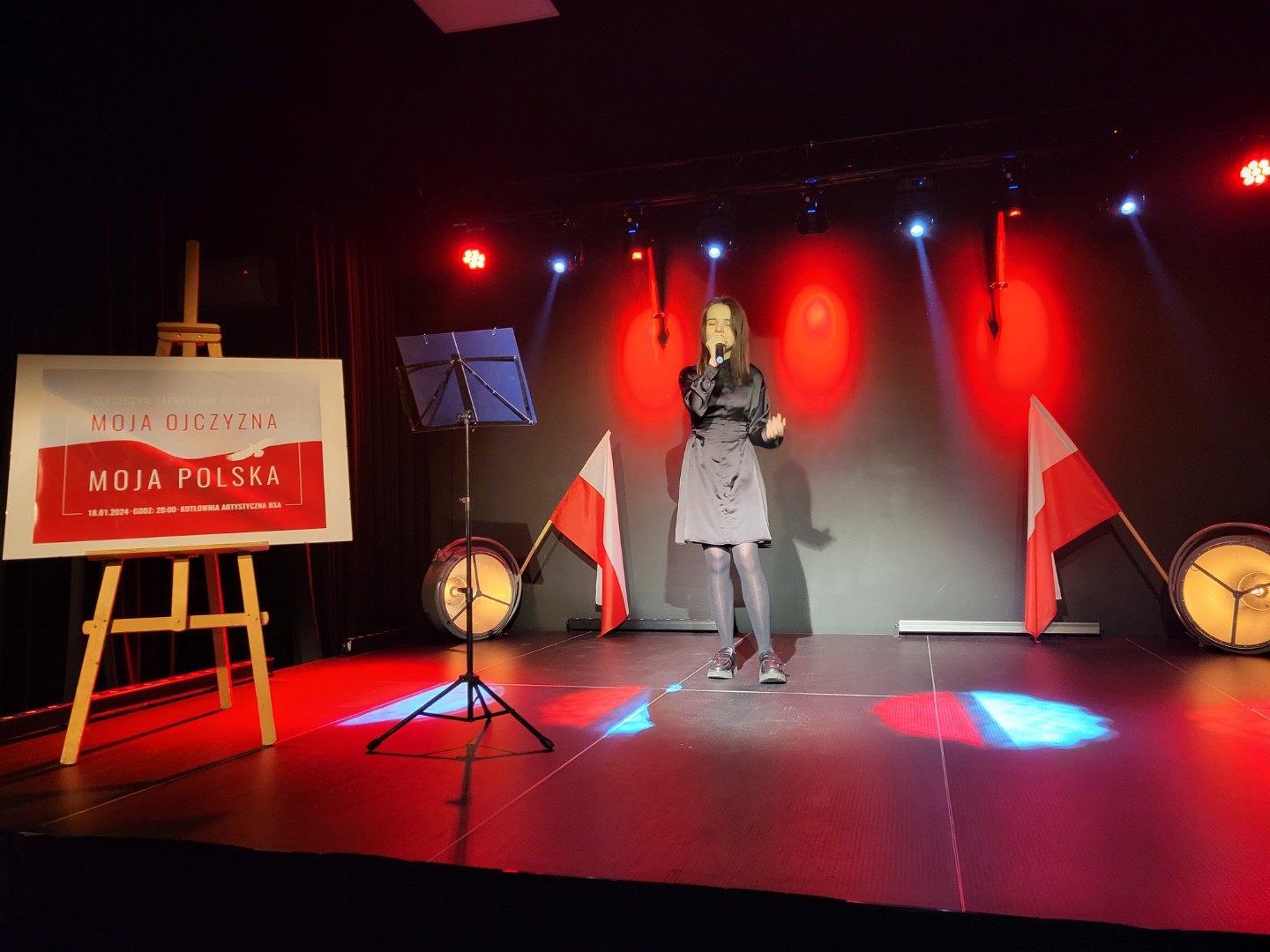 18.01.2024 uczestniczyliśmy w niezwykłym koncercie poświęconym Tej, która zajmuje wyjątkowe miejsce w naszych sercach, Tej - która nie zginęła, Tej - która nas potrzebuje - naszej Ojczyźnie. Miejscem spotkania była Kotłownia Artystyczna BSA, która na ten moment przybrała biało - czerwone barwy, rozświetlone dodatkowo specjalnymi efektami świetlnymi. Zaprezentowane piosenki, wiersze i hymn Polski zagrany na trąbkach, wybrzmiały z taką siłą, że poruszyły serca olbrzymim wzruszeniem i wspólną myślą o Polsce.