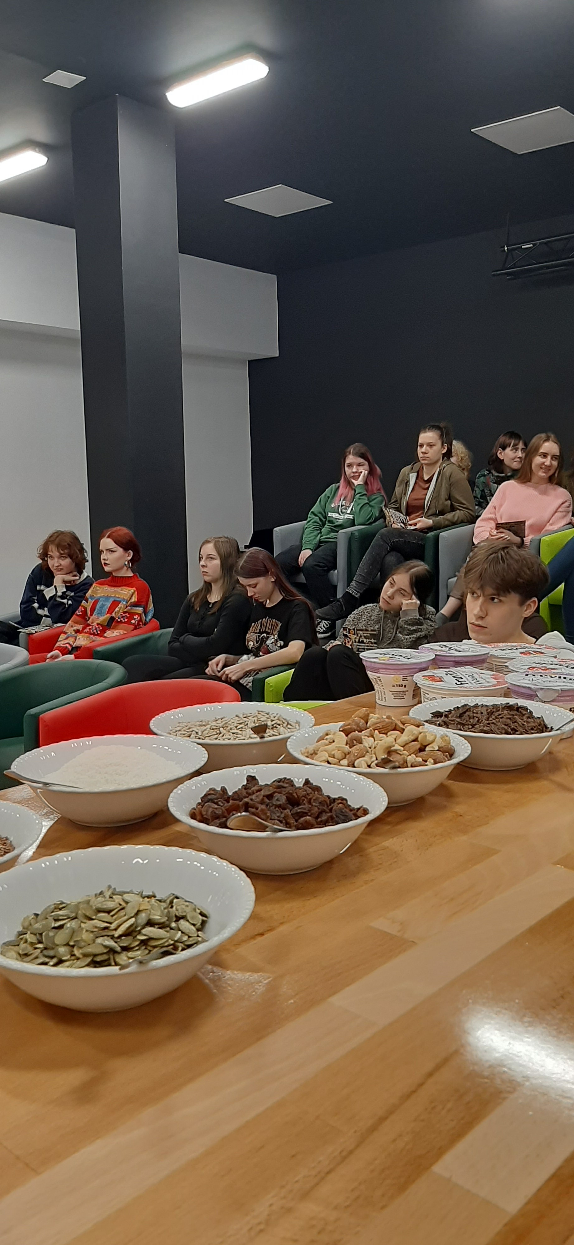 Ale czym by była wiedza bez odrobiny praktyki? Wolelibyśmy tego nie sprawdzać. Dlatego każdy mógł skomponować własną owsiankę przygotowaną na napoju roślinnym lub mleku krowim, dodając pyszne i zdrowe składniki w postaci m.in. różnych owoców, orzechów, siemienia lnianego, pestek dyni, czekolady z wysoką zawartością kakao, wysokoproteinowych kvargów i skyrów.