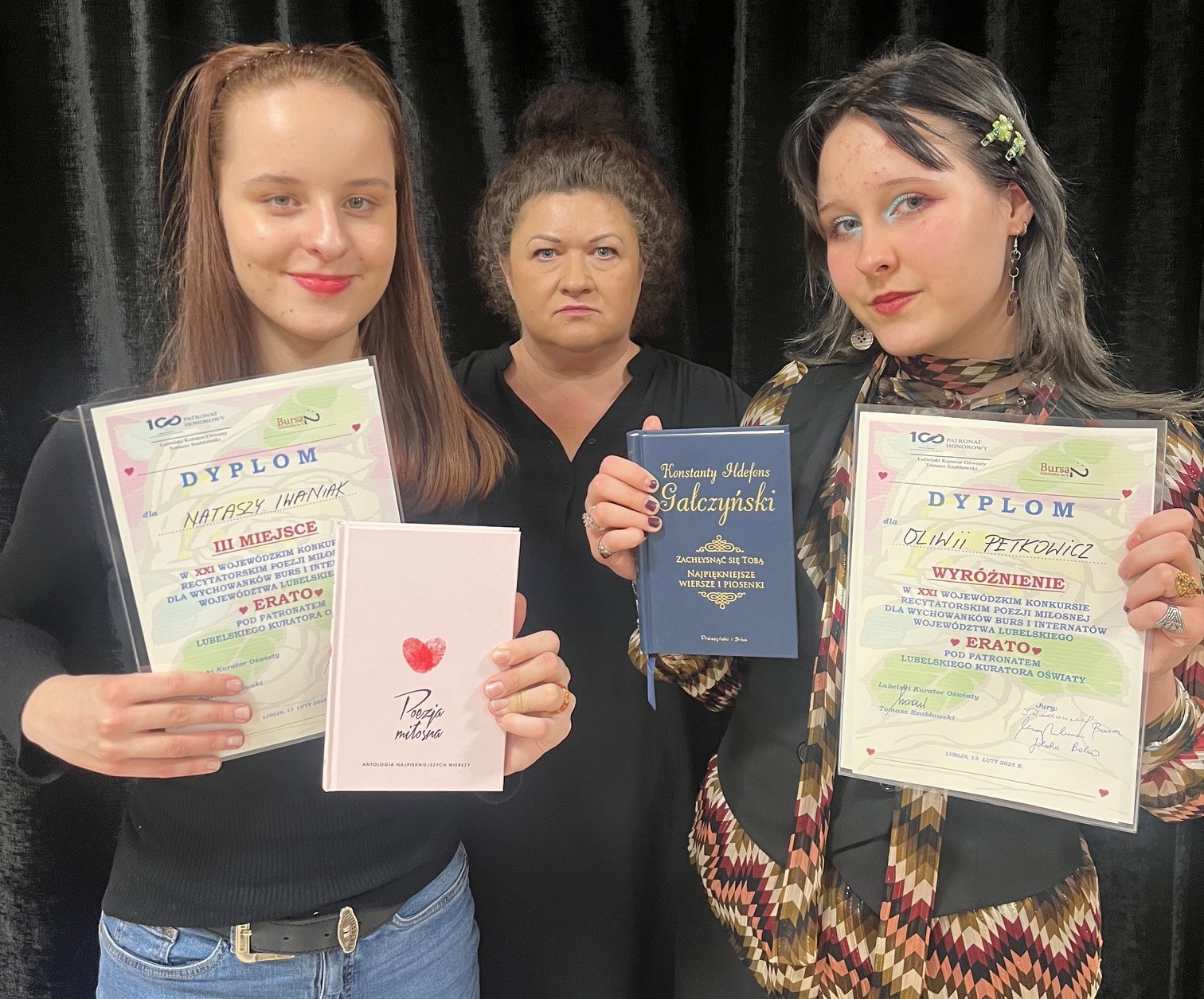Każdego roku z okazji Walentynek, w Bursie Szkolnej nr 2 w Lublinie, odbywa się Wojewódzki Konkurs Recytatorski Poezji Miłosnej ,,Erato” dla wychowanków burs i internatów województwa lubelskiego pod patronatem Lubelskiego Kuratora Oświaty. W tegorocznej, XXI edycji Konkursu nasze reprezentantki zdobyły: