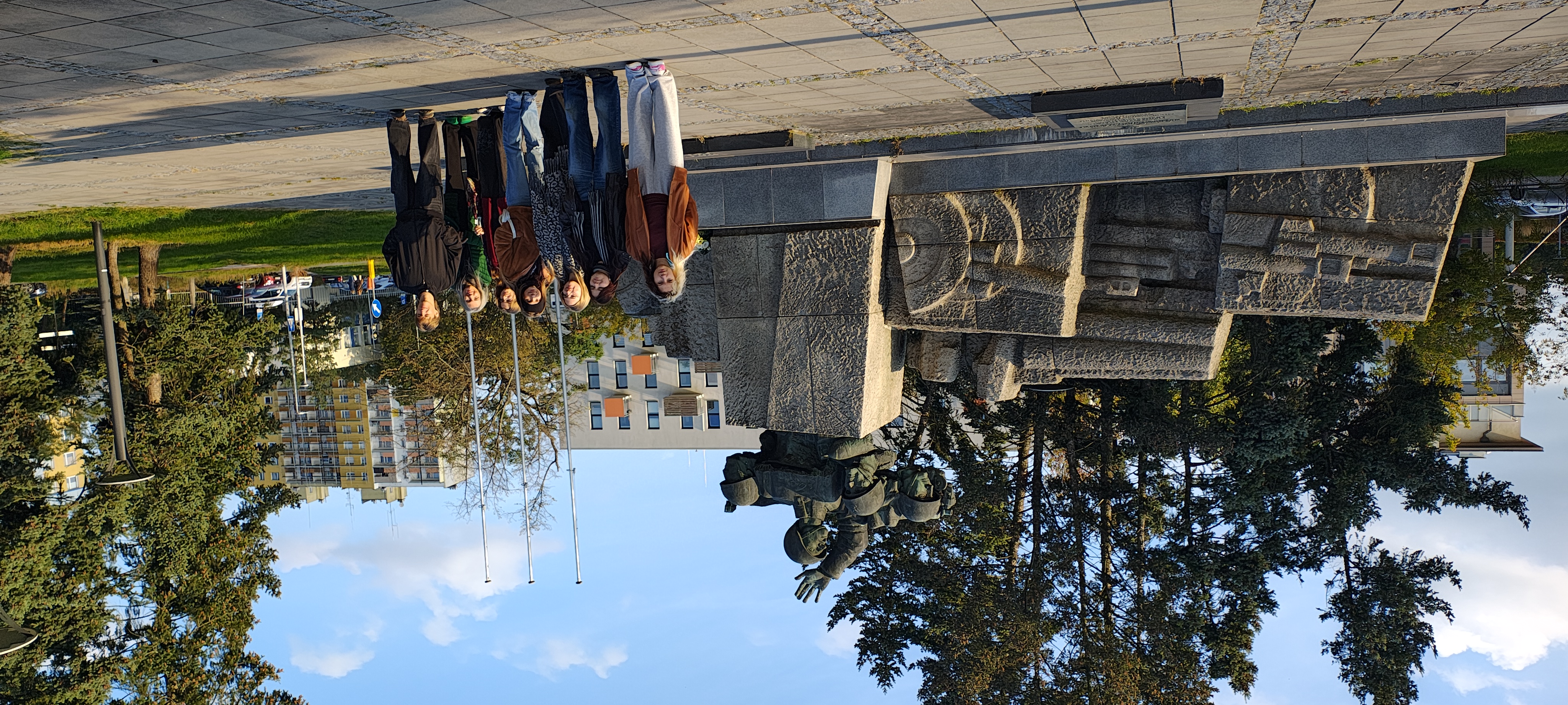 Po obejrzeniu Treblinki wyruszyliśmy do Torunia, tam zatrzymaliśmy się na skwerze gdzie znajduje się Pomnik Polskich Artylerzystów. Obejrzeliśmy go dokładnie, emocje wzbudziła ogromna ręka artylerzysty wzniesiona w górę - to ręka kolegi F. Duszeńki, Zdzisława, który był również wykładowcą na Gdańskiej ASP.