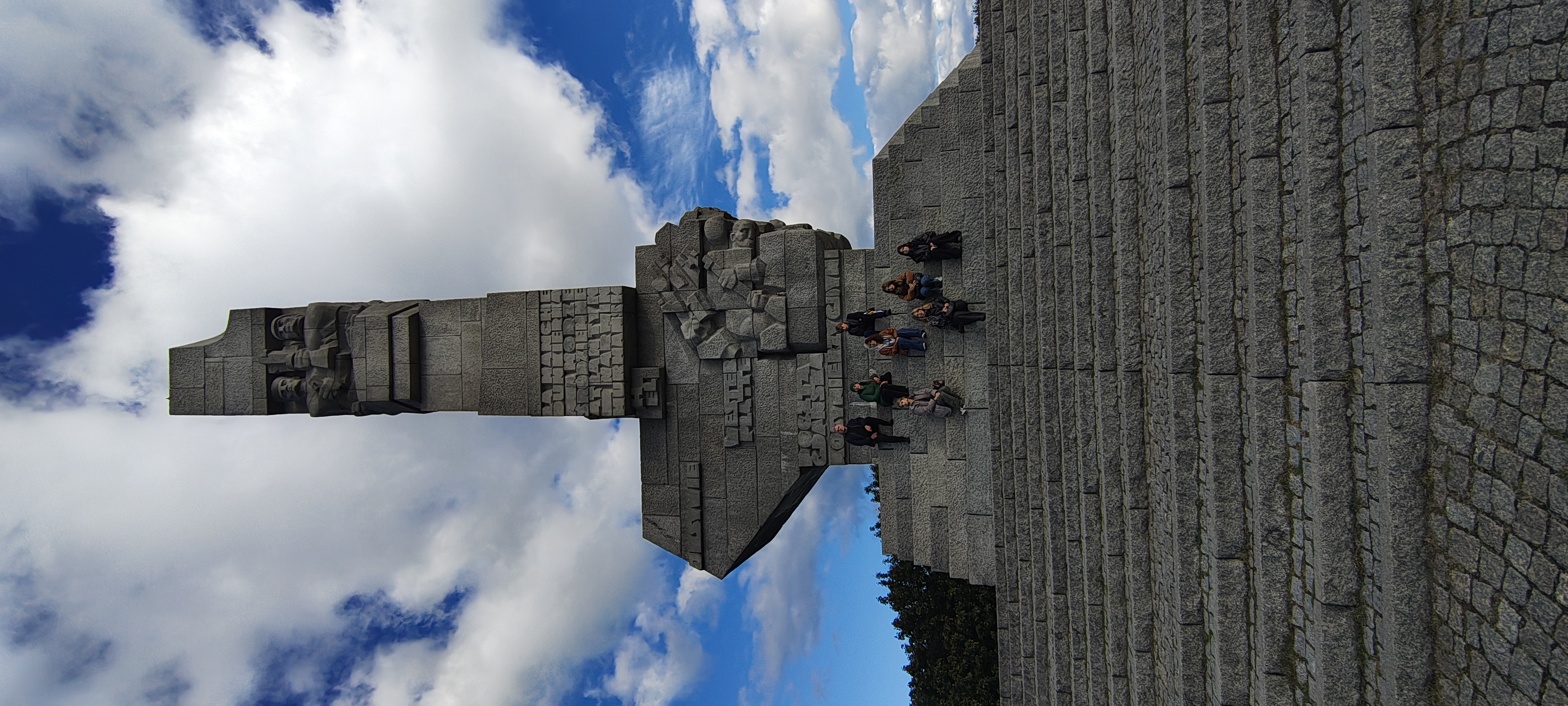 Trasa zaplanowana tak, żeby zobaczyć po drodze dwa monumenty. Pierwszy to Pomnik Ofiar Obozu w Treblince. Po czterech godzinach jazdy wysiedliśmy na parkingu leśnym i poszliśmy drogą do miejsca zagłady gdzie Niemcy podczas II Wojny Światowej wymordowali ogromną liczbę ludności żydowskiej z polskich miast i zatarli za sobą ślady. Po wojnie postanowiono upamiętnić to miejsce i zadanie wykonania pomnika otrzymał F. Duszeńko wraz ze swoim przyjacielem architektem A. Hauptem. Jest to wybitne dzieło, nowatorskie w owym czasie, traktujące całą przestrzeń wokół jako miejsce działania artystycznego, odejście od rzeźby umieszczonej na cokole.