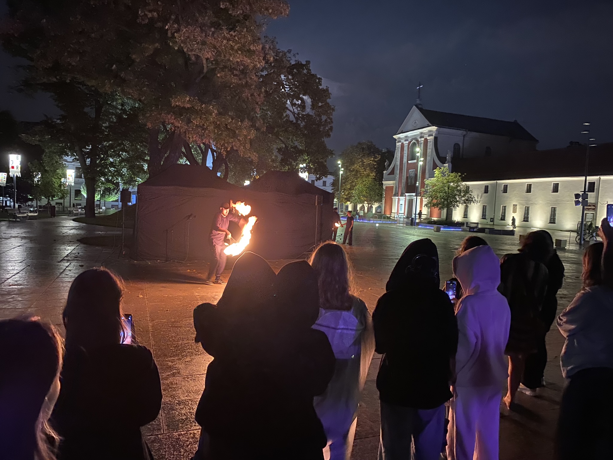 W przerwie między pokazami, odbył się dodatkowy występ. Artyści z Akademii Sztukmistrzów zaprezentowali swoje umiejętności z ogniem w widowiskowym show, które przyciągnęło uwagę wszystkich zebranych. Ich pokaz był również zaproszeniem na warsztaty z zakresu sztuk cyrkowych.
