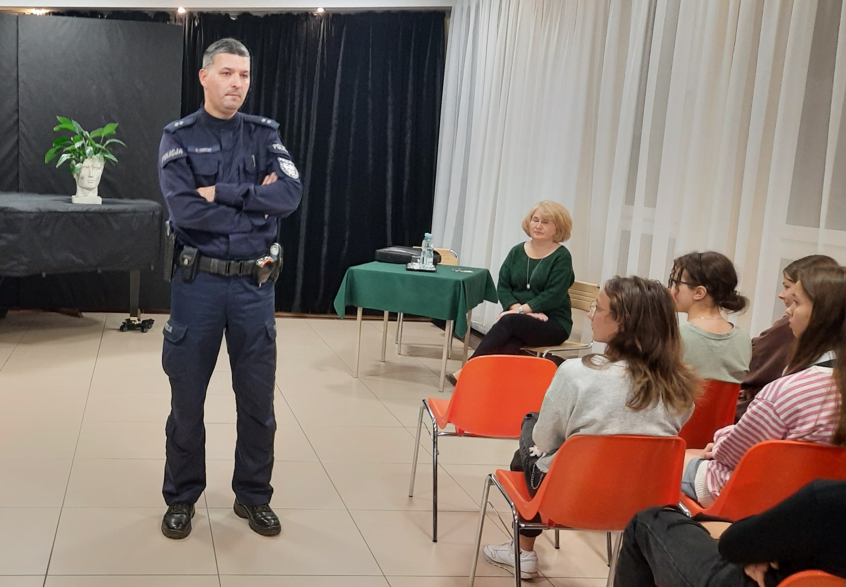 Każdego roku, w trosce o bezpieczeństwo wychowanków, jest dla nich organizowane spotkanie z przedstawicielem Policji. W tym roku w spotkaniu wziął udział pan podkom. Rafał Trocki z Wydziału Prewencji KMP w Lublinie. W jasny i ciekawy sposób przedstawił zagadnienia związane z dbaniem o swoje bezpieczeństwo w życiu codziennym, w środkach komunikacji, galeriach handlowych itp. W przystępny sposób wyjaśnił, jak należy zachować się w czasie kontaktu z policjantem oraz jakie mogą być konsekwencje zachowań, które nie są zgodne z prawem.