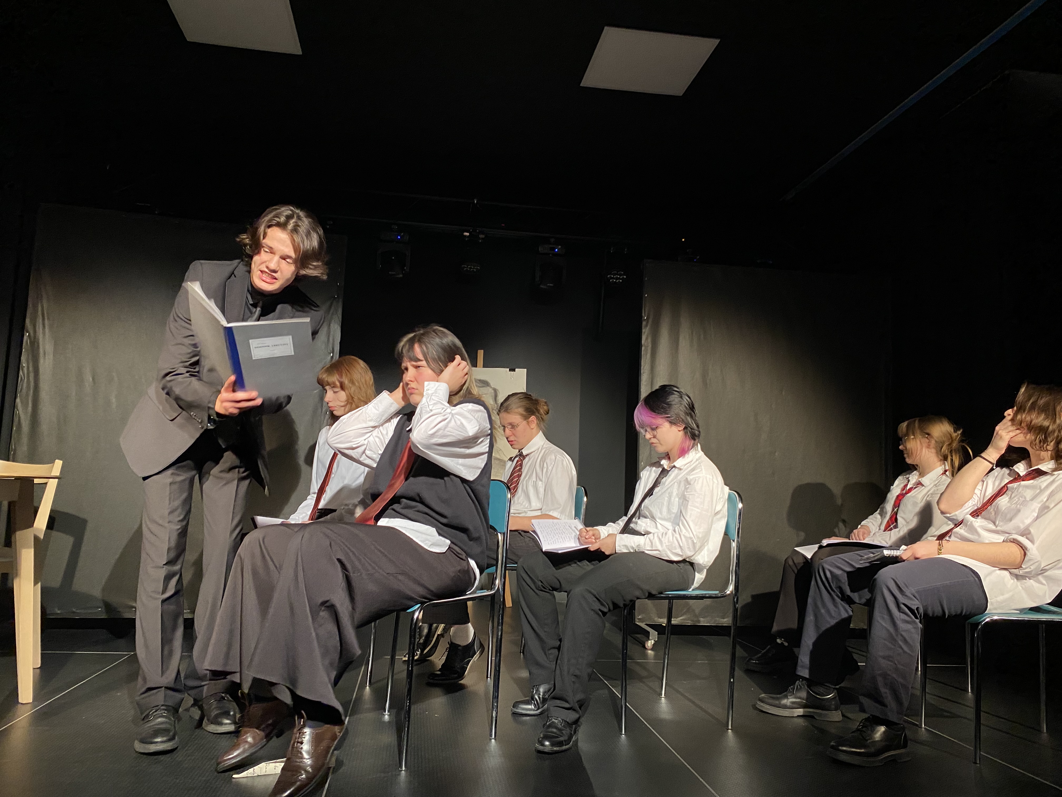 W spektaklu zagrali uczniowie PLSP, wśród których znaleźli się również mieszkańcy naszej Bursy – Oliwia, Hania i Marcelina oraz Kuba i Kacper (obsługa techniczna). Ich żywiołowa interpretacja tekstu Gombrowicza i pełne energii odegrane role spowodowały, że nie przez wszystkich lubiana lektura, zyskała nowe życie i świeżą, zaskakująco aktualną wymowę.