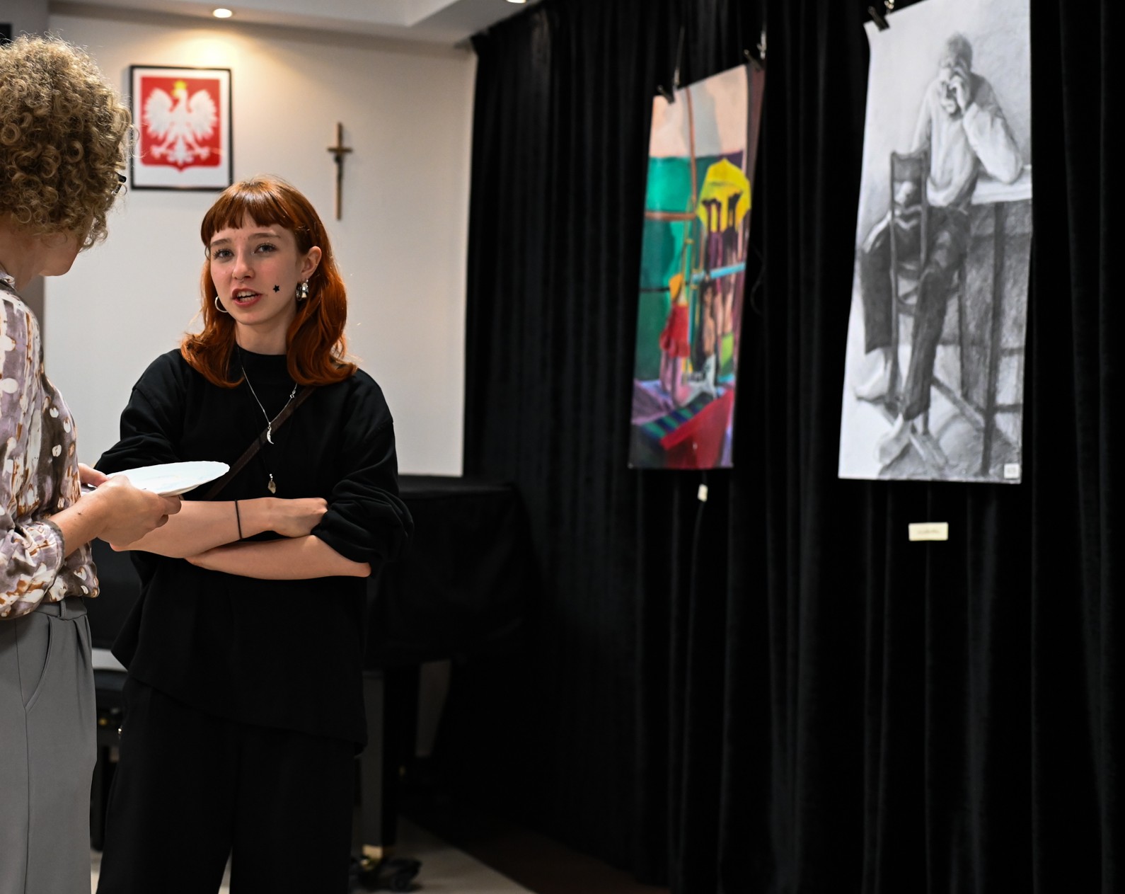 Kolejnym punktem wieczoru była wystawa prac plastycznych, oczywiście autorstwa maturzystek, a na koniec wszyscy delektowali się słodkim poczęstunkiem w świetlicy głównej.