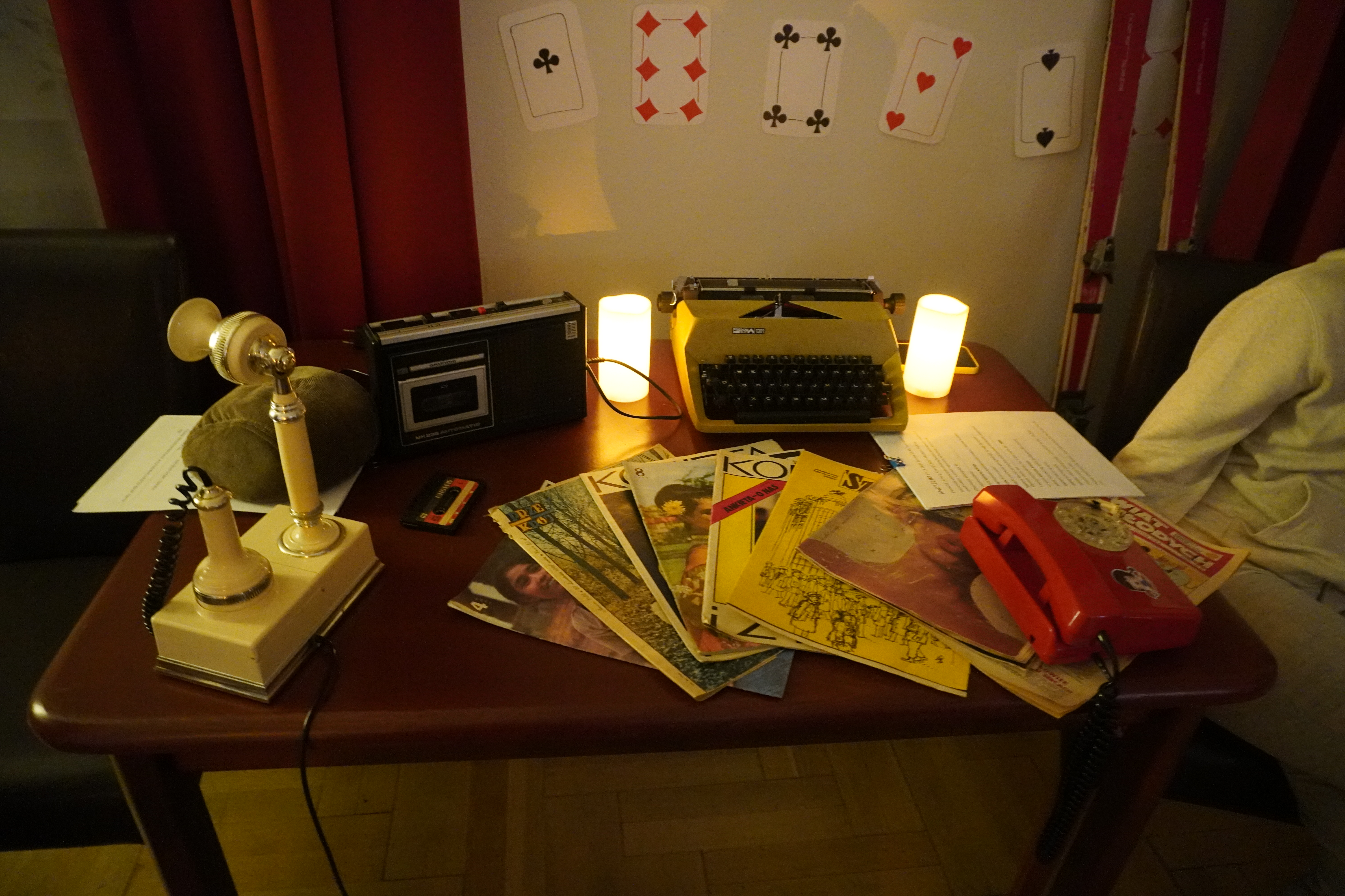 W tle kultowy gramofon, serwował nam z winylowych płyt, nieśmiertelne muzyczne hity z tamtego okresu, w rytmie których mogliśmy poszaleć.