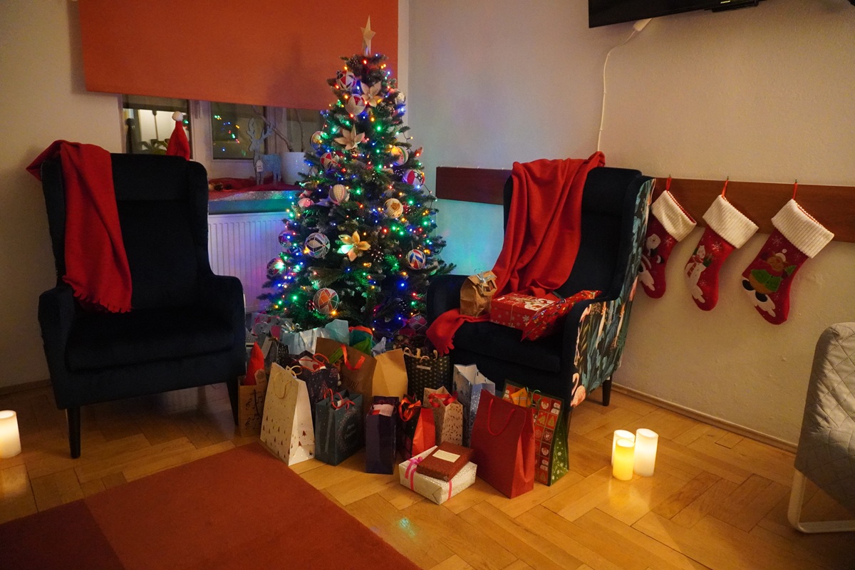 W udekorowanej pięknie, przez Olę – Przewodniczącą Samorządu Wychowanków, sali świetlicowej, gdzie w powietrzu unosił się zapach pierników i gorącego kakao, zaś w tle rozbrzmiewały świąteczne piosenki, przy bogato strojonej choince, pod którą piętrzył się stos prezentów, w poniedziałkowy wieczór odbyły się… bursowe mikołajki.