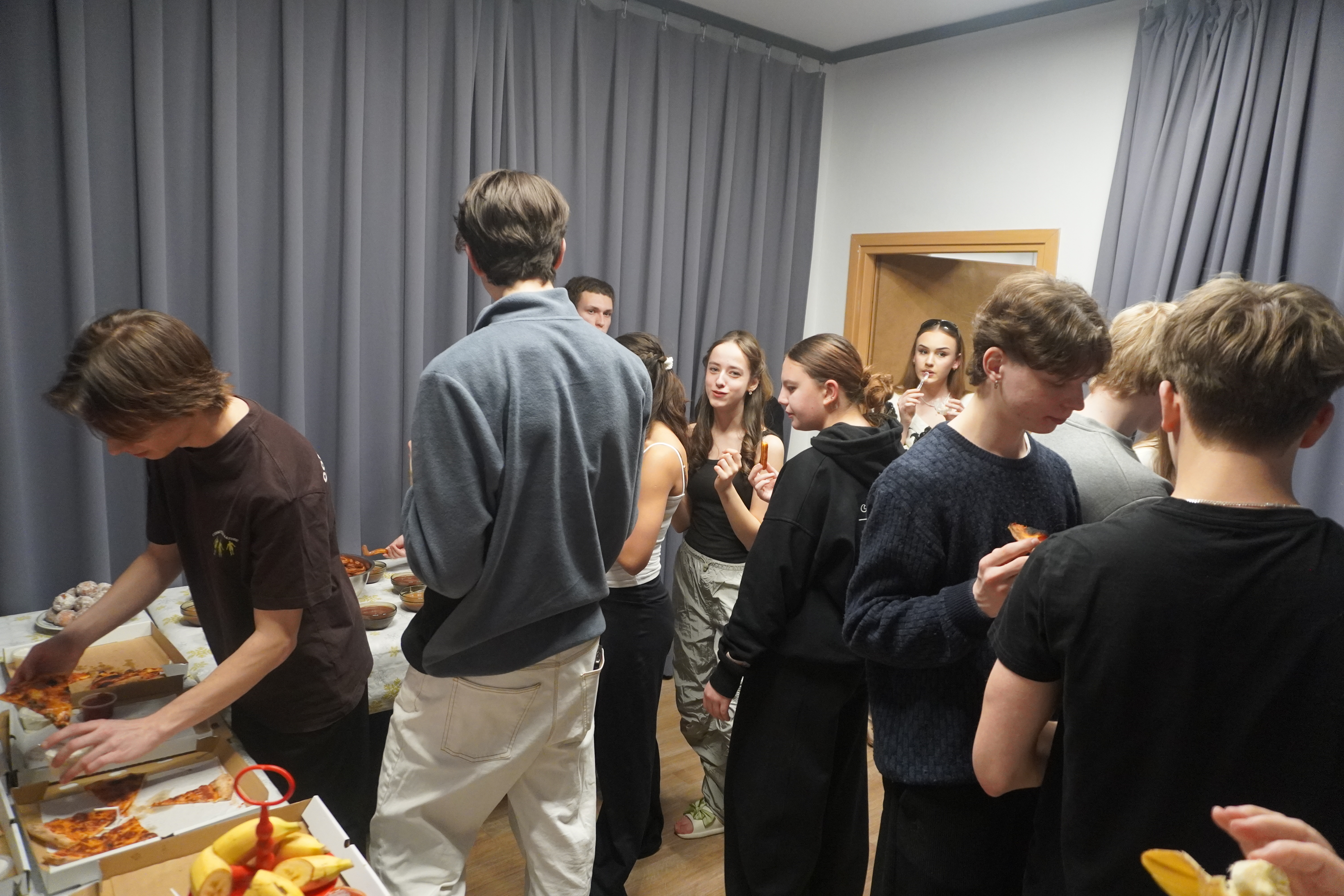 Następnie prowadzący spotkanie zaprosili uczestników pokazu na drugą odsłonę karnawału, do bursy. A tu było wesoło, tanecznie i smacznie. Wróciliśmy do Włoch, konkretnie do Neapolu i miejscowej kuchni. Królową stołu była pizza w różnych wariantach.
