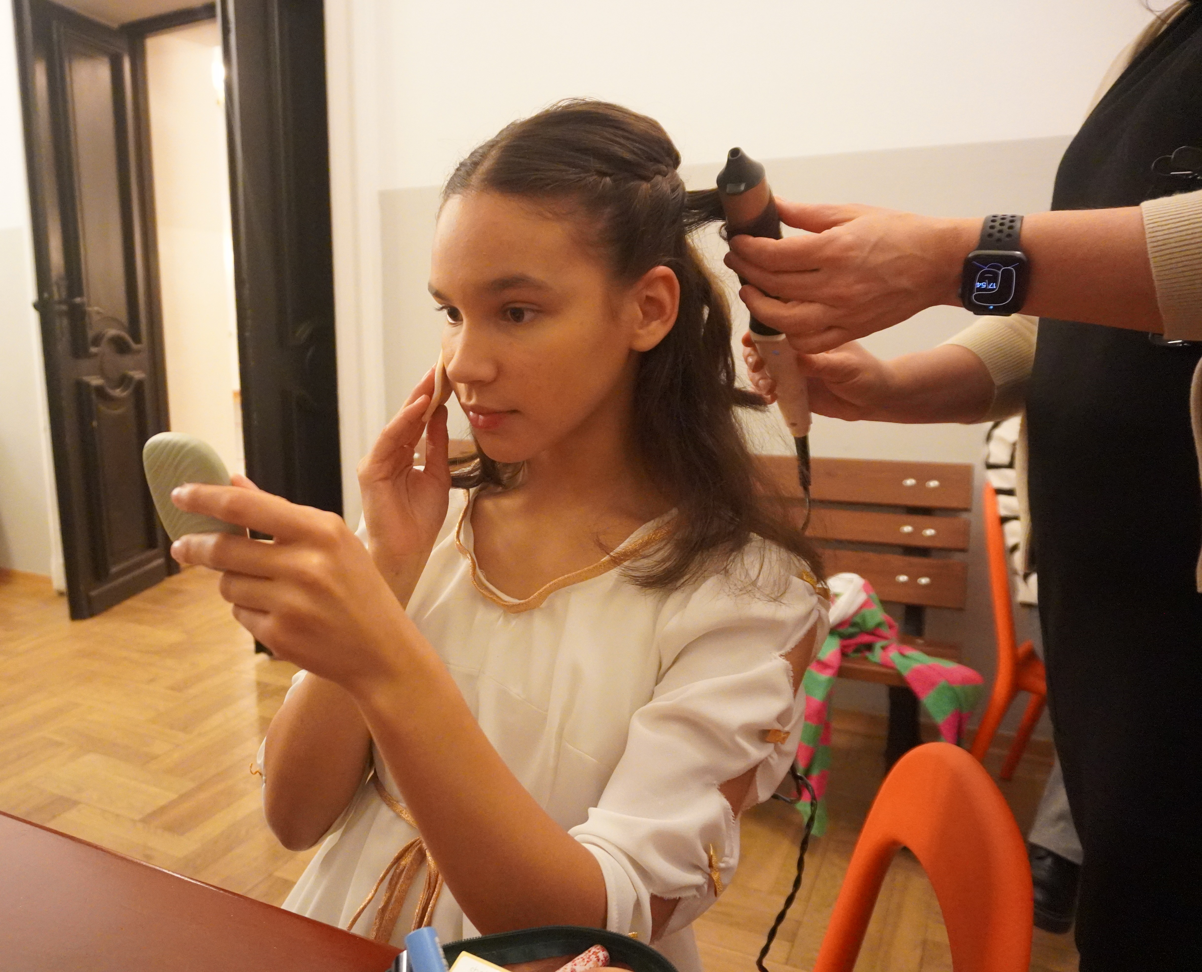 Kolejną odsłoną spotkania był pokaz Żywych Obrazów. Na jednej scenie – a nawet w jednej ramie – zmieściły się dwie „Dziewczyny z perłą”, „Dziewczynka w niebieskim kapeluszu” i Frieda Kahlo. Ciekawostki z życia artystów opowiedziała nam jedna z wychowawczyń BSA.