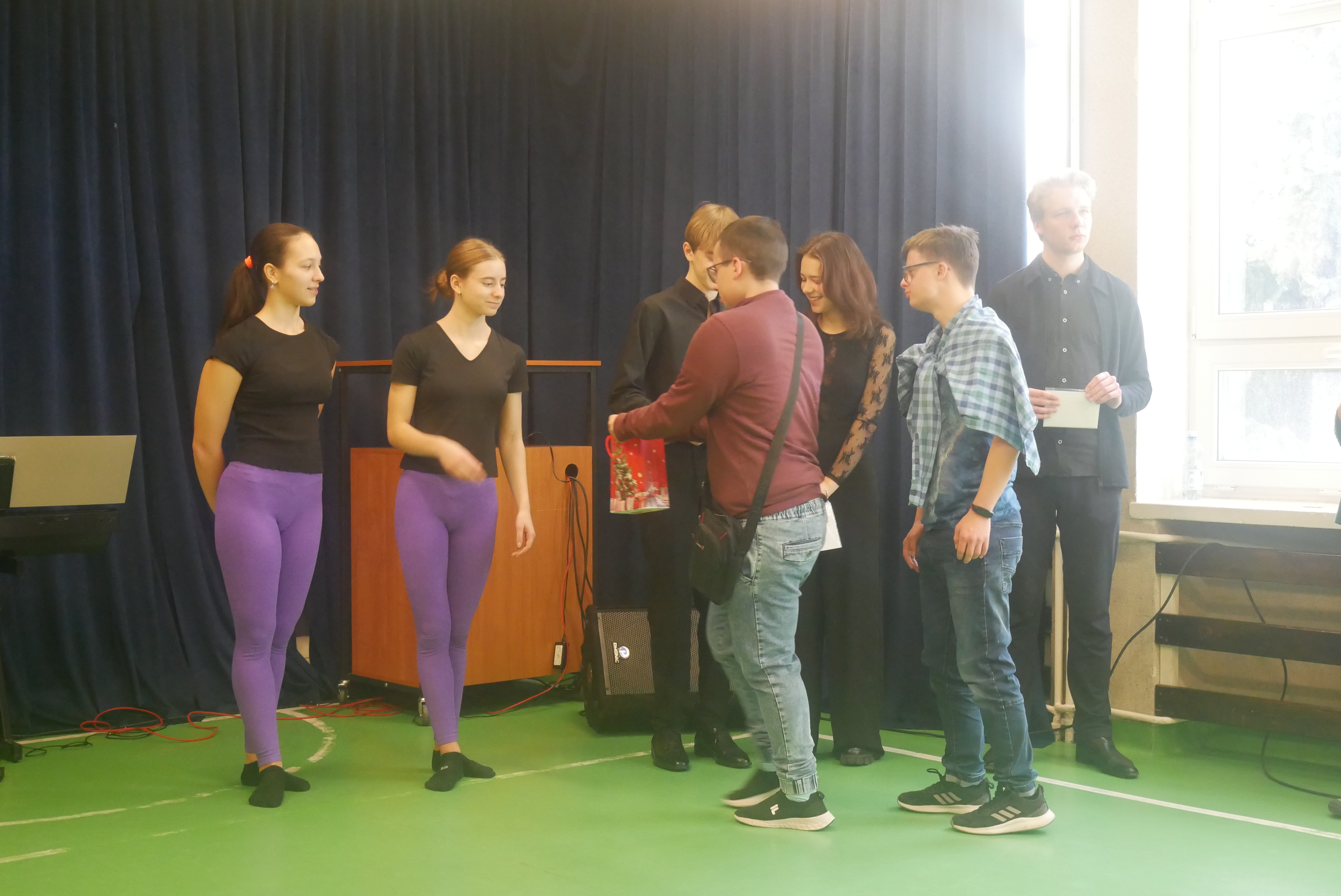 Na zakończenie wystąpiły uczennice szkoły cyrkowej - Daria i Kristina. Wykonały układy gimnastyczne, między innymi: mostek, skorpiona i serduszko.