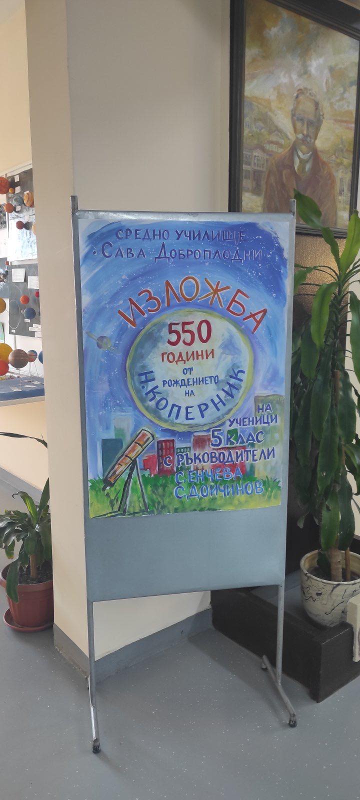 Изложба, посветена на Слънчевата система и 550-та годишнина от рождението на Николай Коперник беше открита в СУ „Сава Доброплодни“. Автори на инсталациите, показващи хелиоцентричната система, описана за първи път от Коперник, са учениците от петите класове с преподаватели Светлана Добрева и Станислав Дойчинов.
