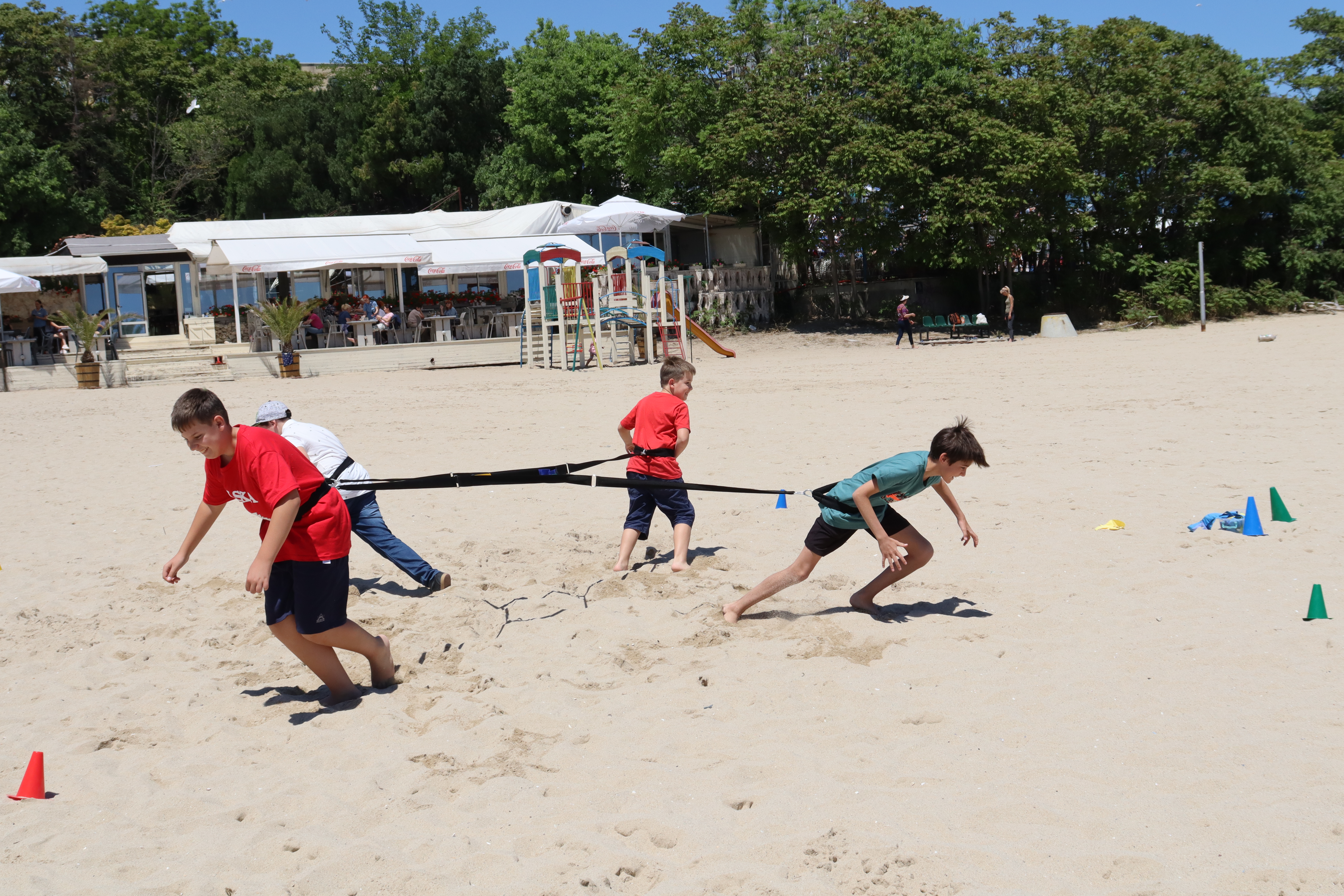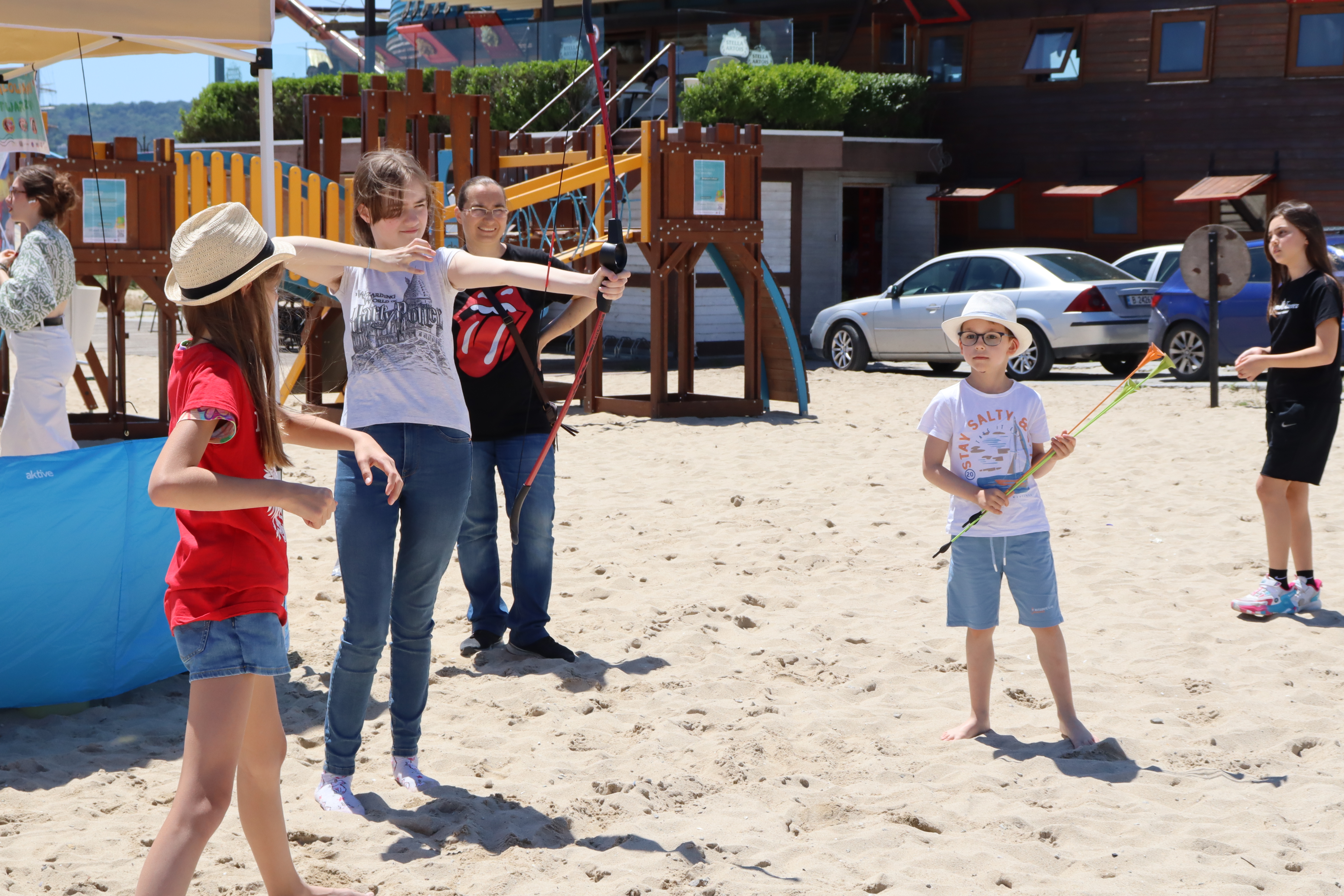 • malowanie twarzy, gigantyczne bańki mydlane, przeciąganie liny, gra w siatkówkę plażową, strzelanie z łuku.