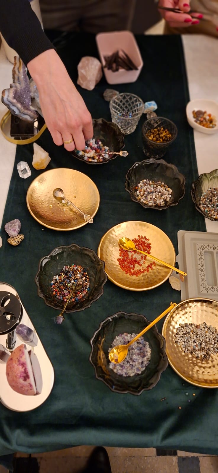 Podczas warsztatów uczestniczki mogły rozwijać swoją kreatywność i umiejętności manualne, a także poznawać techniki tworzenia biżuterii pod okiem profesjonalnej instruktorki. Efektem pracy były autorskie projekty biżuterii z kamieni szlachetnych – niepowtarzalne i zachwycające swoim pięknem.