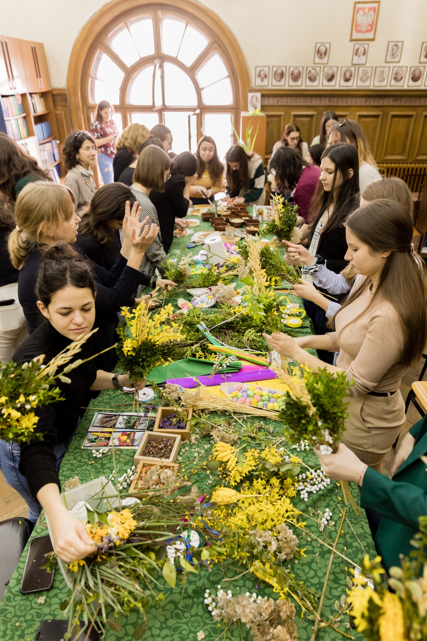 Zgromadzeni goście, wśród których nie zabrakło przedstawicieli polskiej społeczności z Bułgarii, pracowników Ambasady i Instytutu Polskiego oraz studentów, chętnie włączyli się do wspólnego przygotowania palm, pisanek i mazurków. Widać było zaangażowanie, z jakim uczestnicy słuchali opowiadań o historii symboli wielkanocnych i samodzielnie tworzyli palemki, przygotowywali mazurki i jajka. Przedstawiciele polskiej społeczności w Bułgarii chętnie dzielili się również opowieściami o tym, jak obchodzą Wielkanoc w swoich domach na styku tradycji polskich i bułgarskich. Uczestnicy warsztatów mogli zabrać do domu wykonane przez siebie mazurki, palemki i pisanki. Możliwość wspólnej pracy i rozmowy sprawiła wszystkim dużo radości.