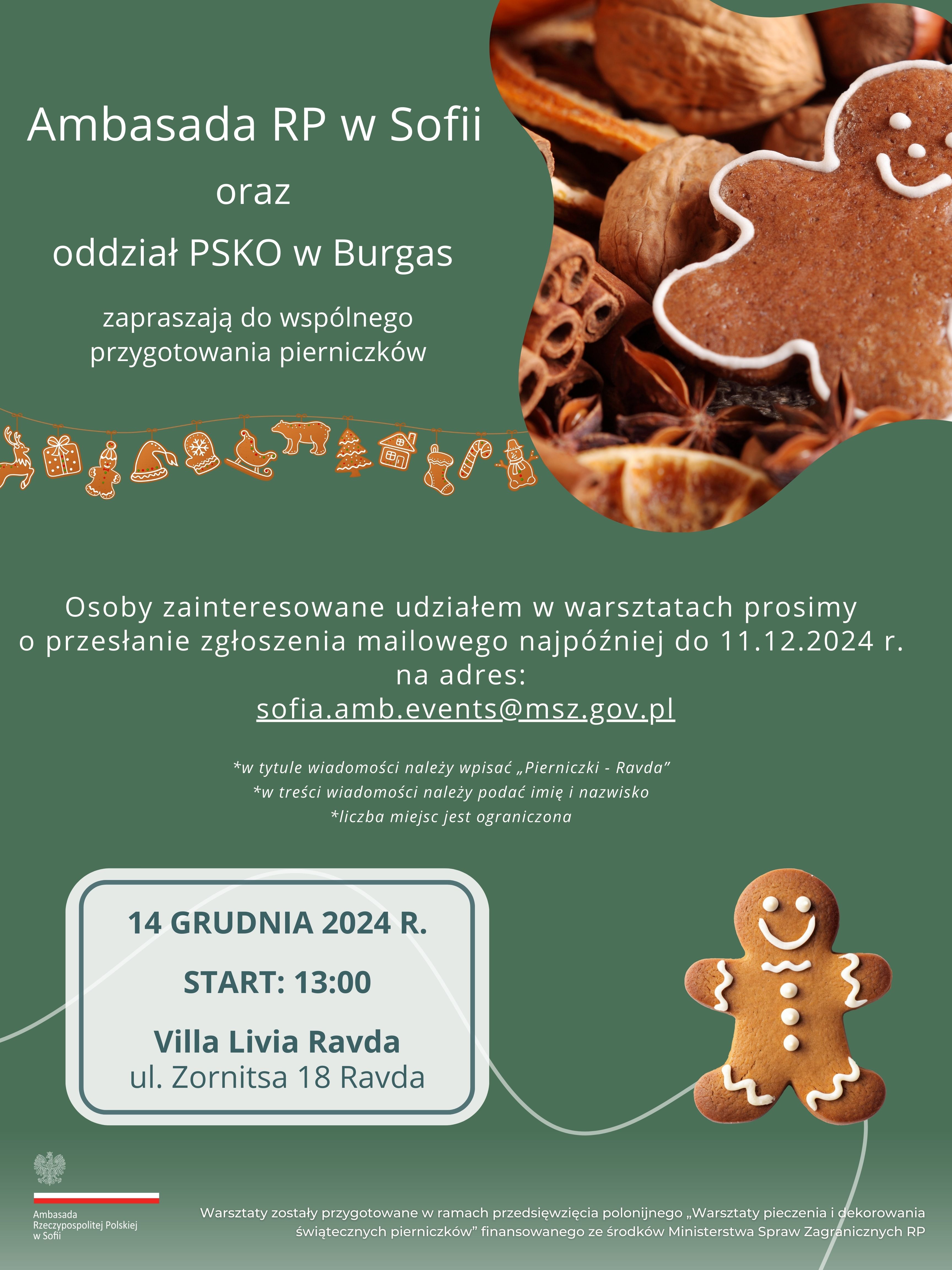 Ambasada RP w Sofii oraz oddział PSKO w Burgas zapraszają do wspólnego przygotowania pierniczków: