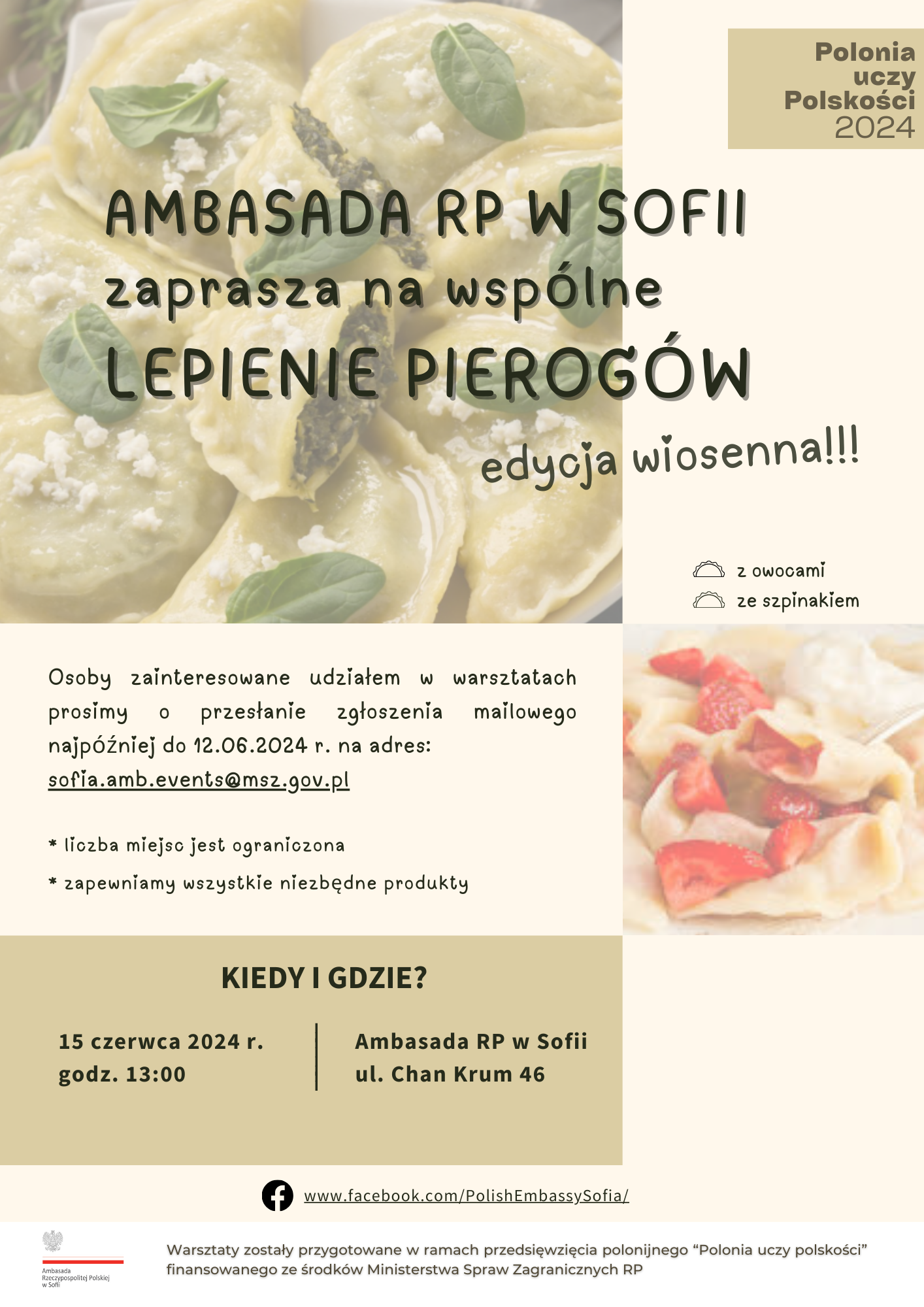 Ambasada RP w Sofii zaprasza na warsztaty z cyklu Polonia uczy polskości „Lepienie pierogów” edycja wiosenna.