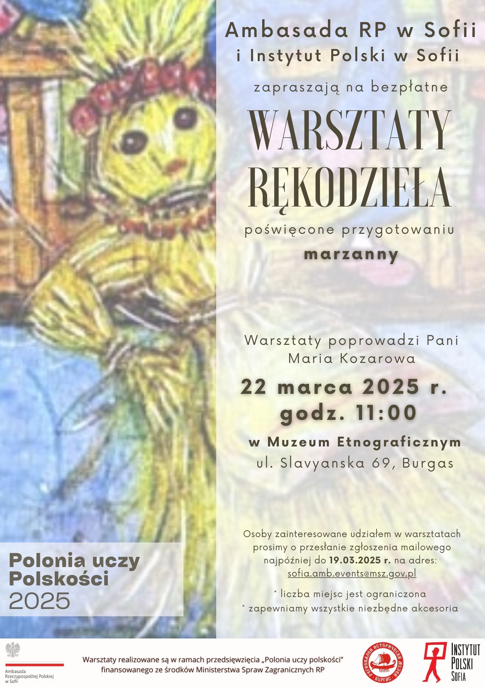 Osoby zainteresowane udziałem w warsztatach prosimy o przesłanie zgłoszenia mailowego najpóźniej do 19.03.2025 r. na adres: