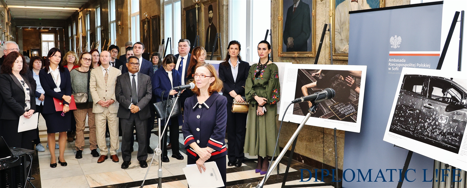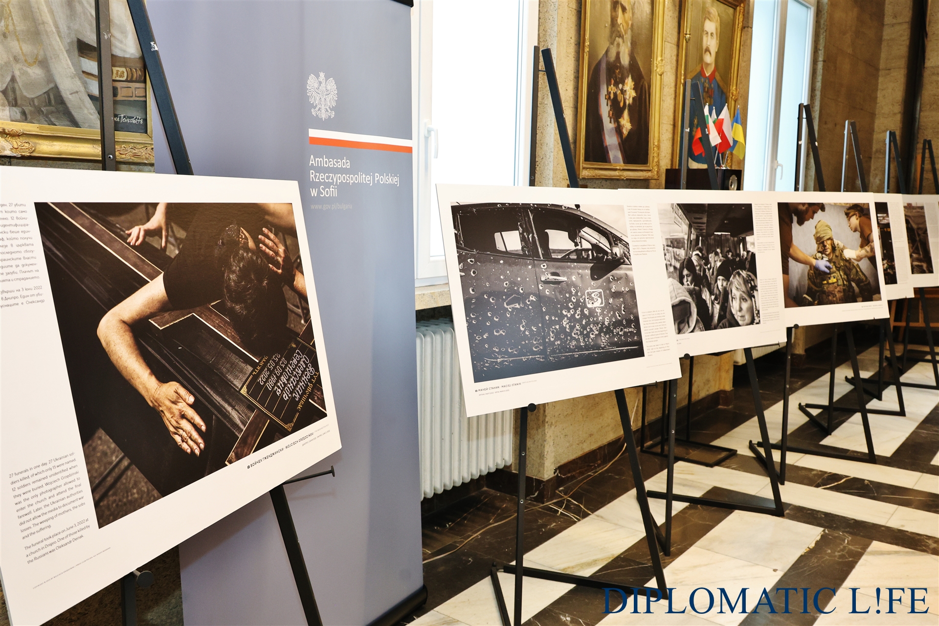 Uroczystość otworzyła rzecznik prasowa Biblioteki Narodowej, pani Maria Stojanowa, która podkreśliła znaczenie współpracy międzynarodowej na rzecz upamiętniania ofiar wojny oraz dokumentowania rosyjskiej agresji na Ukrainę. Następnie głos zabrała Dyrektor Biblioteki p. Kalina Iwanowa, która podziękowała Ambasadzie RP w Sofii za możliwość zorganizowania wystawy i zwracając się do przedstawicieli Press Club Polska podkreśliła ogromną odwagę i wrażliwość jaką wymaga fotografowanie okrucieństwa wojny w Ukrainie. I Radca Ambasady RP Anna Janiszewska-Frączek, otwierając wystawę w imieniu Ambasadora RP Macieja Szymańskiego zaznaczyła rolę fotoreporterów w dokumentowaniu konfliktów zbrojnych oraz znaczenie rzetelnego przekazu wizualnego w procesie przeciwdziałania dezinformacji. Jarosław Włodarczyk, jako producent wystawy omówił proces jej powstawania, współpracę z fotografami oraz wyzwania logistyczne związane z prezentacją materiału w różnych krajach, m.in. w Indiach. Poinformował, że wystawa była prezentowana w wielu europejskich instytucjach publicznych, a jej rolą jest utrwalanie pamięci o wydarzeniach w Ukrainie i wzmacnianie solidarności międzynarodowej. Maciej Nabrdalik, którego prace stanowią istotną część ekspozycji, opowiedział o swojej pracy na Ukrainie, ryzyku towarzyszącym pracy reporterskiej oraz etycznych dylematach dokumentowania wojny. Iryna Biriukowa, dyrektor Biblioteki w Odessie, wyraźnie wzruszona podziękowała za możliwość udziału w otwarciu wystawy i wyraziła wdzięczność za tak cenne i istotne dla Ukrainy inicjatywy. W swoim wystąpieniu podkreśliła, że takie wydarzenia wzmacniają Ukrainę oraz dokumentują wojenną rzeczywistość dla przyszłych pokoleń.