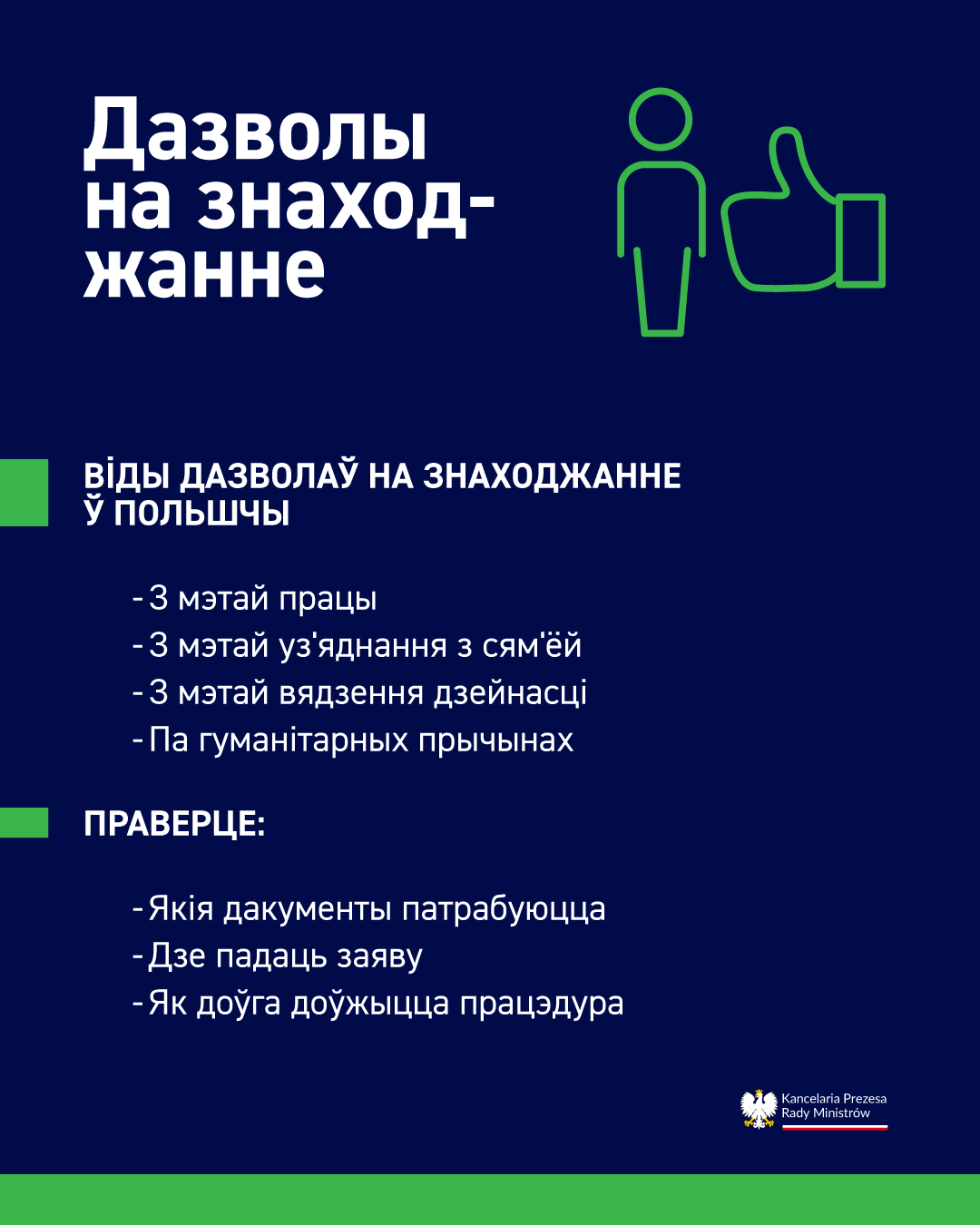 - Дазвол на пастаяннае знаходжанне – для асоб з Картай паляка або польскім паходжаннем.