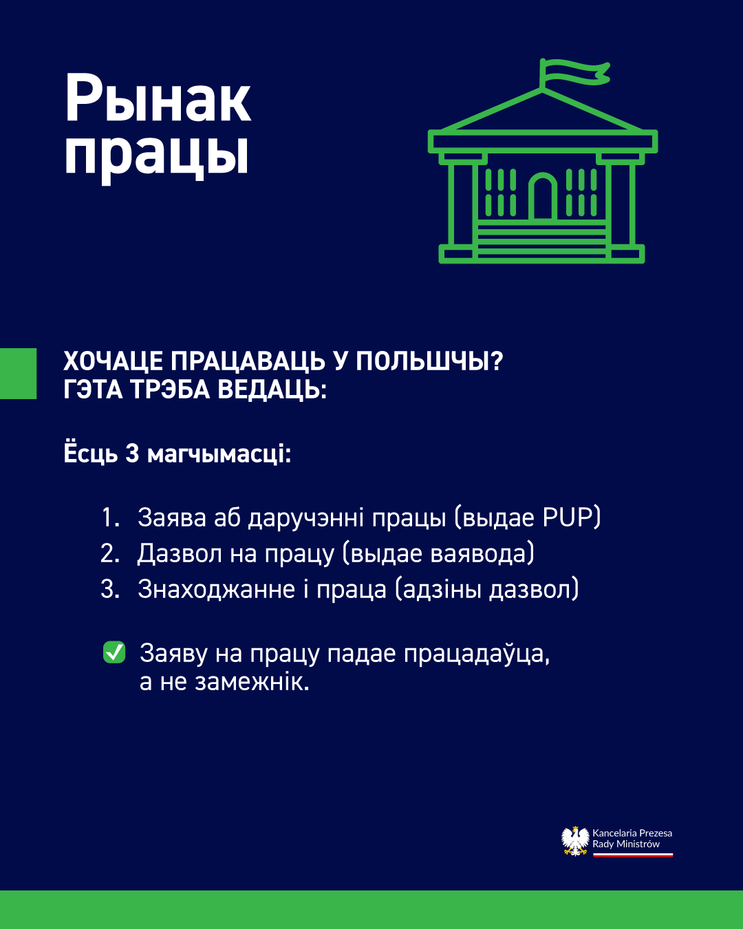 Грамадзяне Беларусі могуць працаваць у Польшчы на падставе: