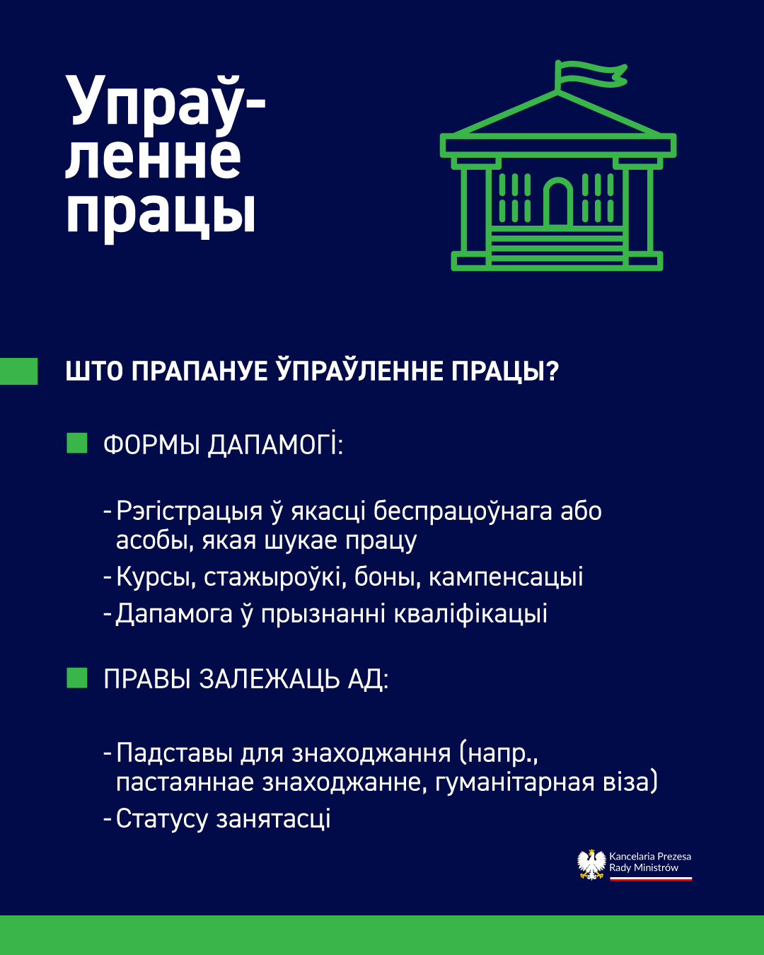 • Партал ДСЗ: https://www.psz.praca.gov.pl (даступная беларуская версія)