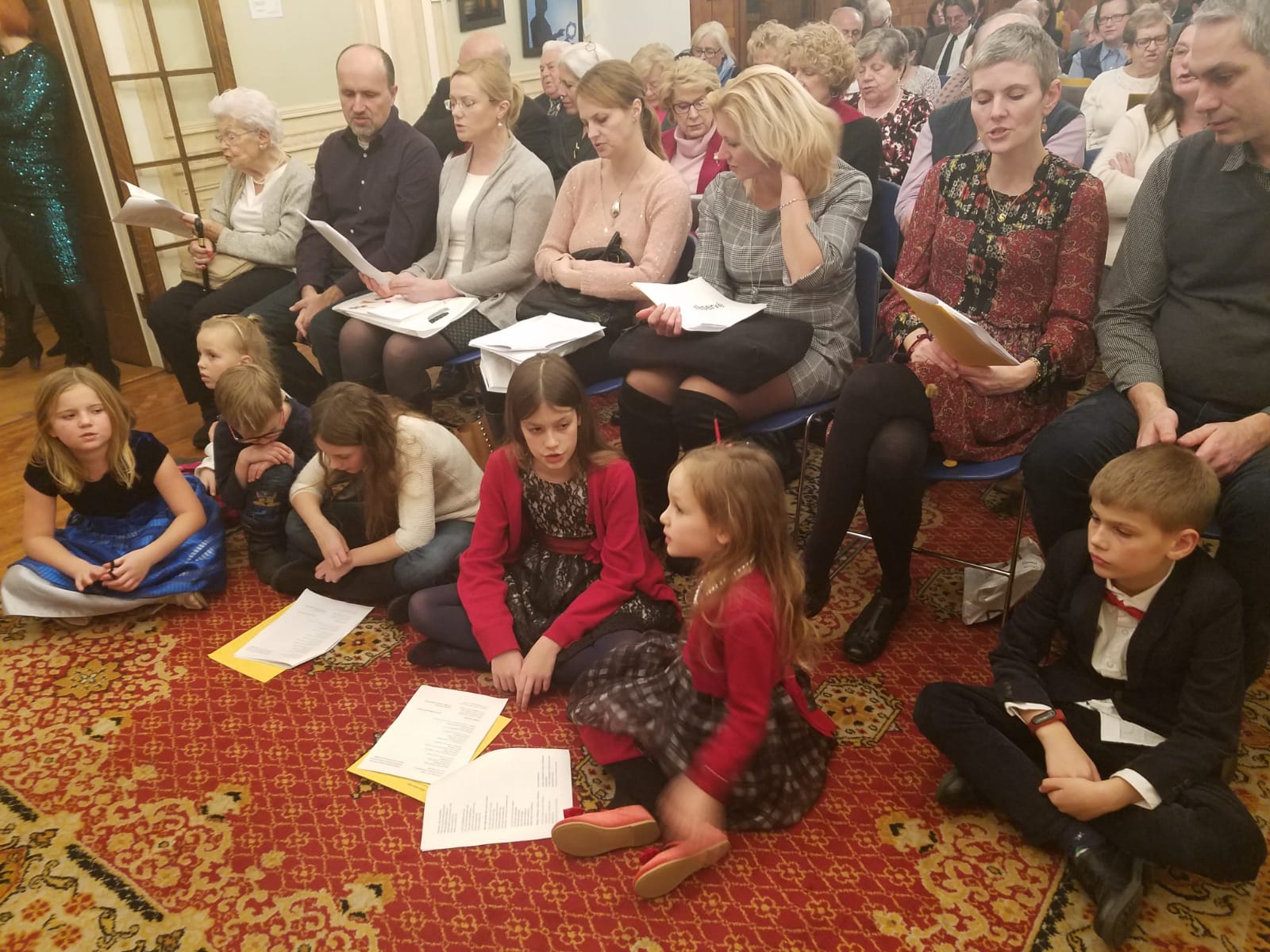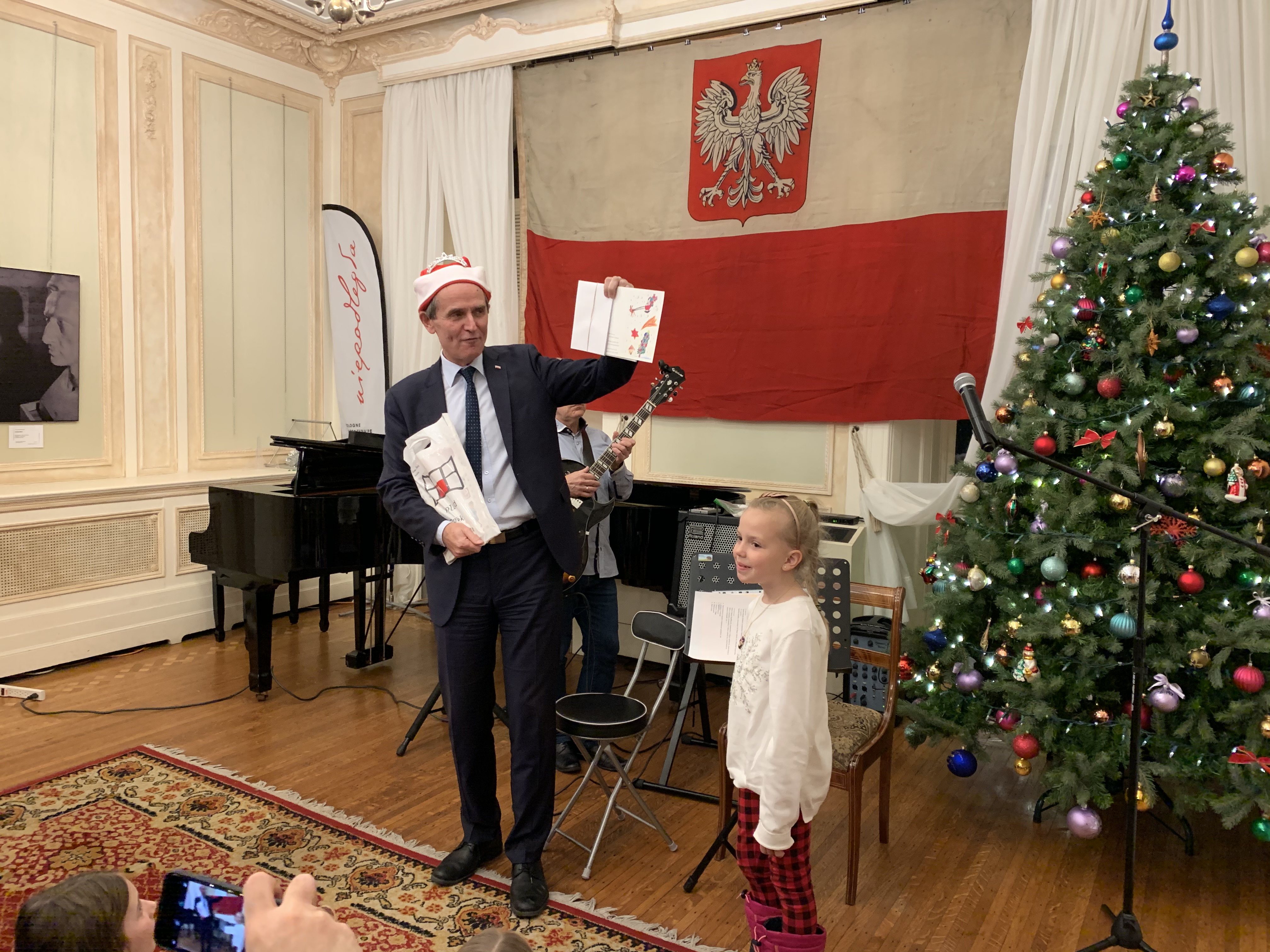 To the accompaniment of Justyna Gabzdyl (piano), Olga Mizyuk (cello), and Jerzy Peter (guitar) and with the vocal support of Ella Wilhelm (soprano), Ricardo Galindo (baritone), and Paul Kunigis, we sang carols in Polish, French, English, Spanish, German, Lithuanian, and Latin.