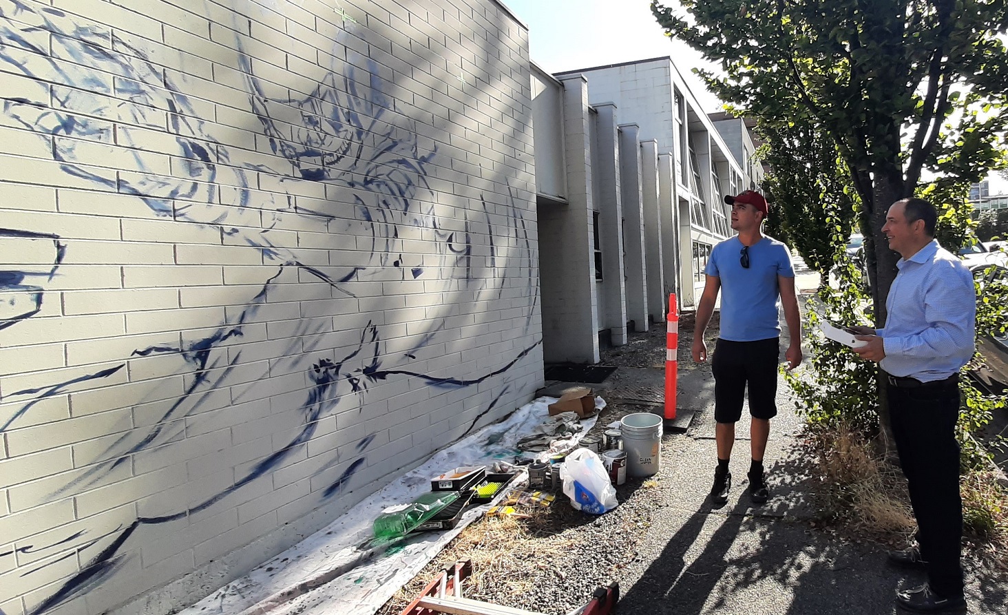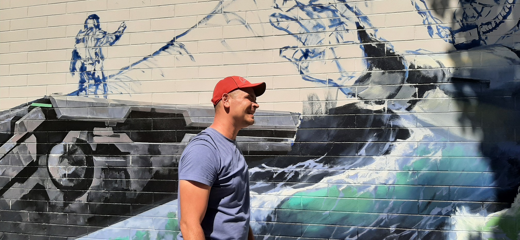 The mural’s creator is Dimitri Sirenko – Canadian artist (born in Ukraine) who derives inspiration from both classical and modern painting disciplines. For Dimitri, art is a language that can communicate on both conscious and subconscious levels which is why the aesthetic execution of his art is a big part of making that language more accessible for a wider range of audiences.