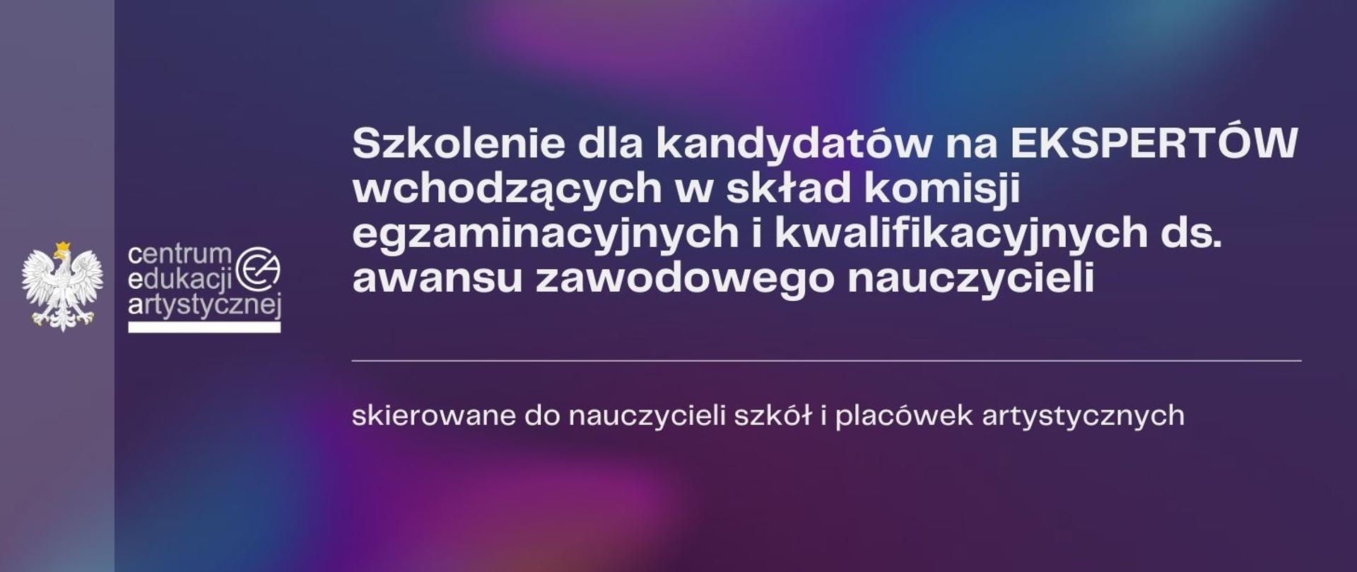 04.11.2022Szkolenie dla kandydatów na ekspertów wchodzących w skład komisji egzaminacyjnych i kwalifikacyjnych ds. awansu zawodowego nauczycieli szkół artystycznychSzkolenie dla kandydatów na EKSPERTÓW wchodzących w skład komisji egzaminacyjnych i kwalifikacyjnych ds. awansu zawodowego nauczycieli skierowane do nauczycieli szkół i placówek artystycznych.