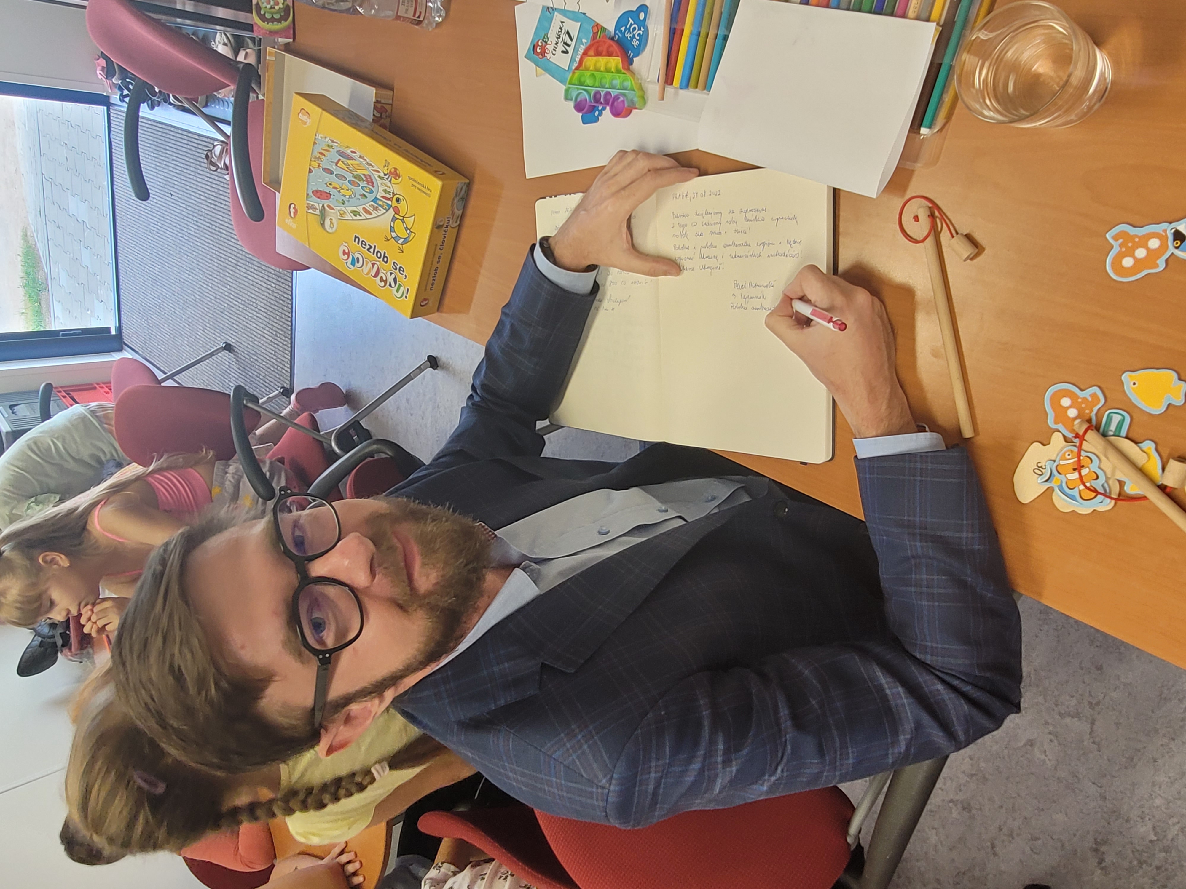 Polští diplomaté věnovali dětem v centru pastelky, omalovánky, puzzle a hračky.