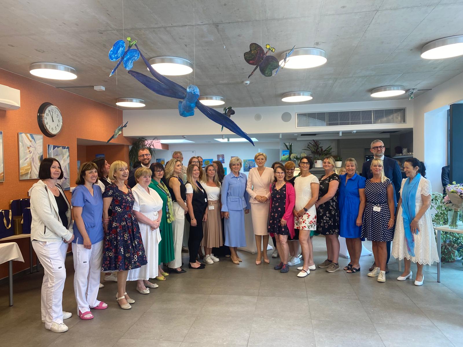 Paní Agata Kornhauser-Duda společně s paní Evou Pavlovou navštívily Domov pro seniory Elišky Purkyňové. Polská první dáma dále zavítala do Azylového domu pro matky s dětmi Otevřené srdce, kde se setkala s místními i vedením zařízení.