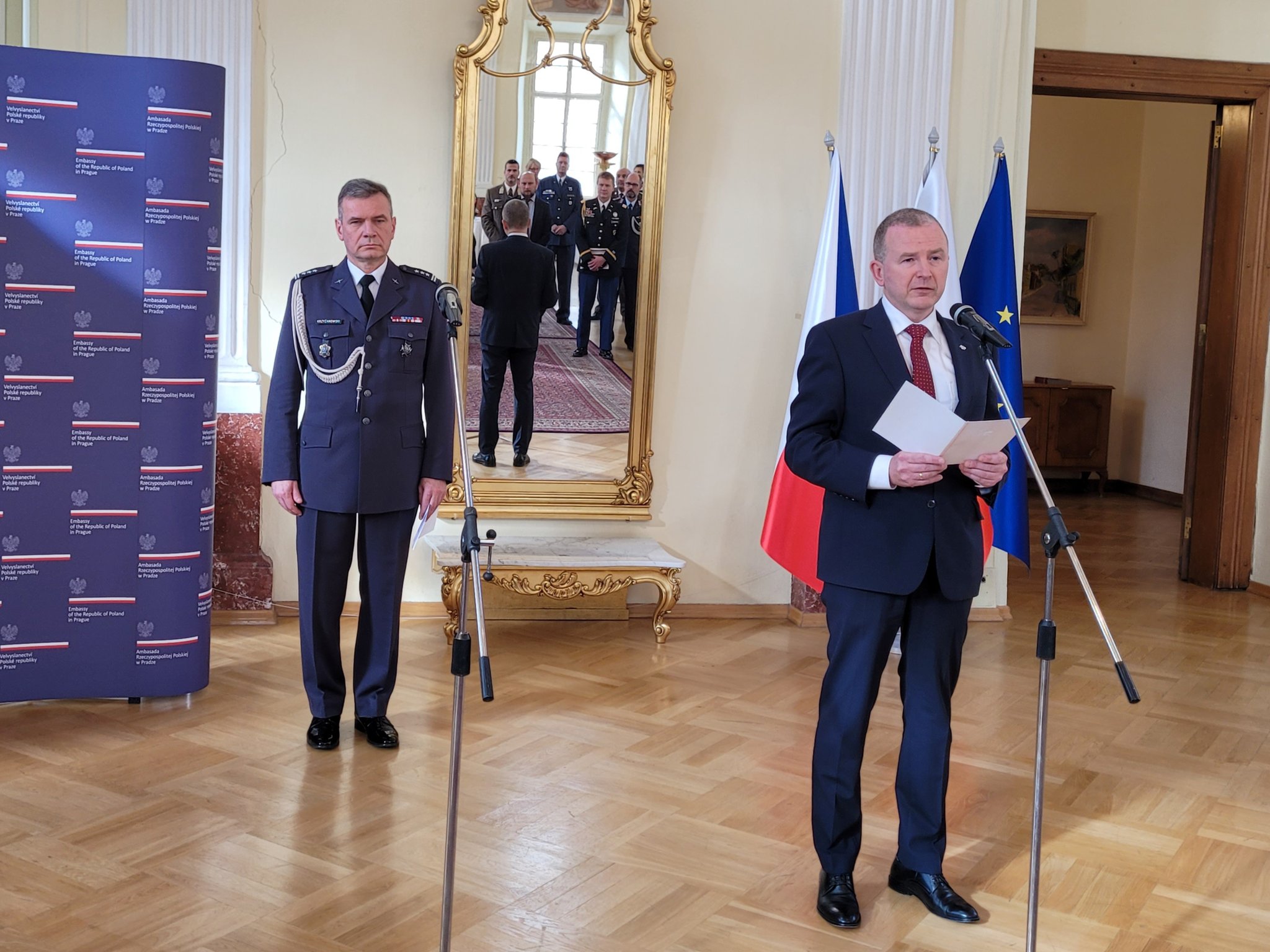 Hostitelé recepce, polský velvyslanec Mateusz Gniazdowski a přidělenec obrany plk. Adam Krzyżanowski, ve svých projevech zdůraznili velmi dobrou polsko-českou vojenskou spolupráci. Jejími projevy jsou například společná ochrana vzdušného prostoru Slovenské republiky, společná účast na cvičeních v Polsku i Česku, letošní podpis Dohody o vzájemné spolupráci v oblasti obrany nebo přijetí Polska jako speciálního partnerského státu na Dnech NATO a Dnech Vzdušných sil Armády České republiky v Ostravě v příštím roce.
