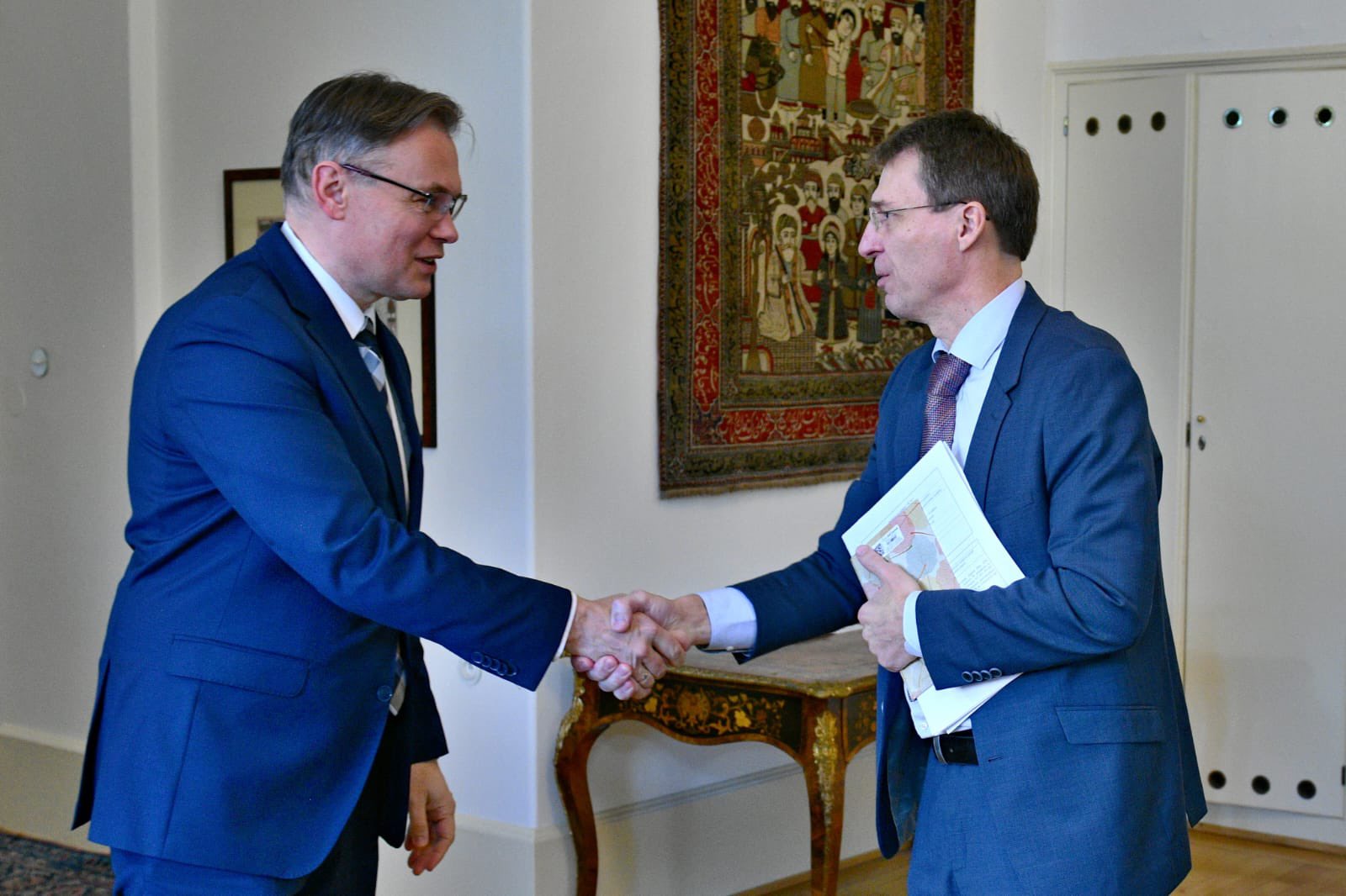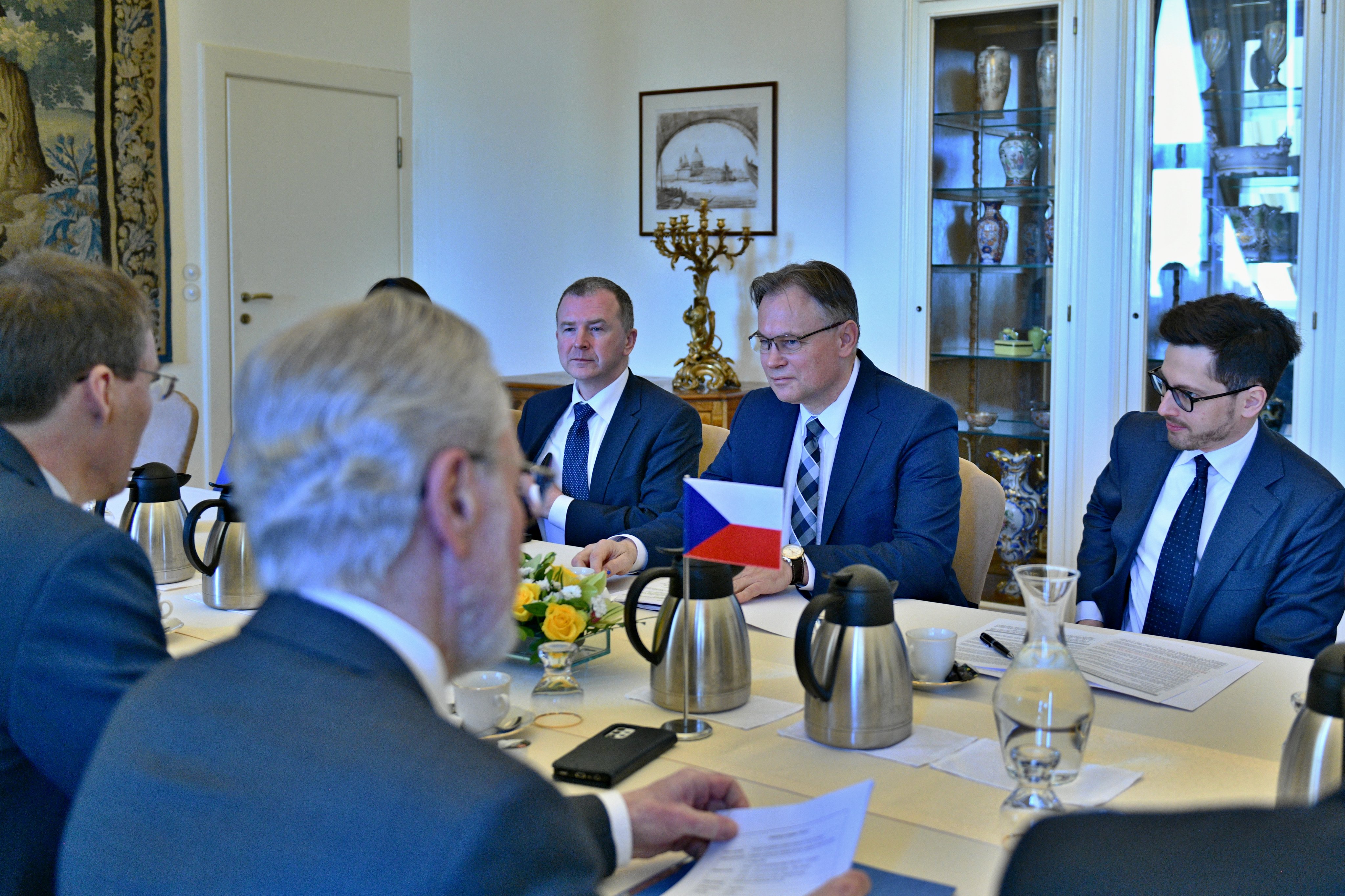 Na Ministerstvu zahraničních věcí ČR se setkal s náměstkem ministra Jiřím Kozákem a vrchním ředitelem sekce evropské Jaroslavem Kurfürstem.