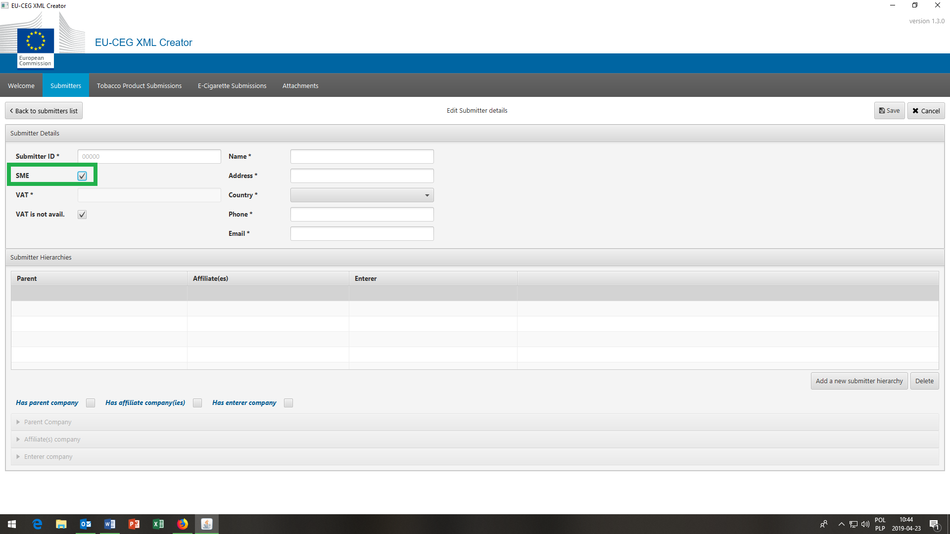 Na stronie Komisji Europejskiej znajdują się tłumaczenia poradników dotyczących uzyskania przez zgłaszającego numeru ID oraz tłumaczenia pól w kreatorze plików zarówno dla zgłoszenia e-papierosów jak i wyrobów tytoniowych.