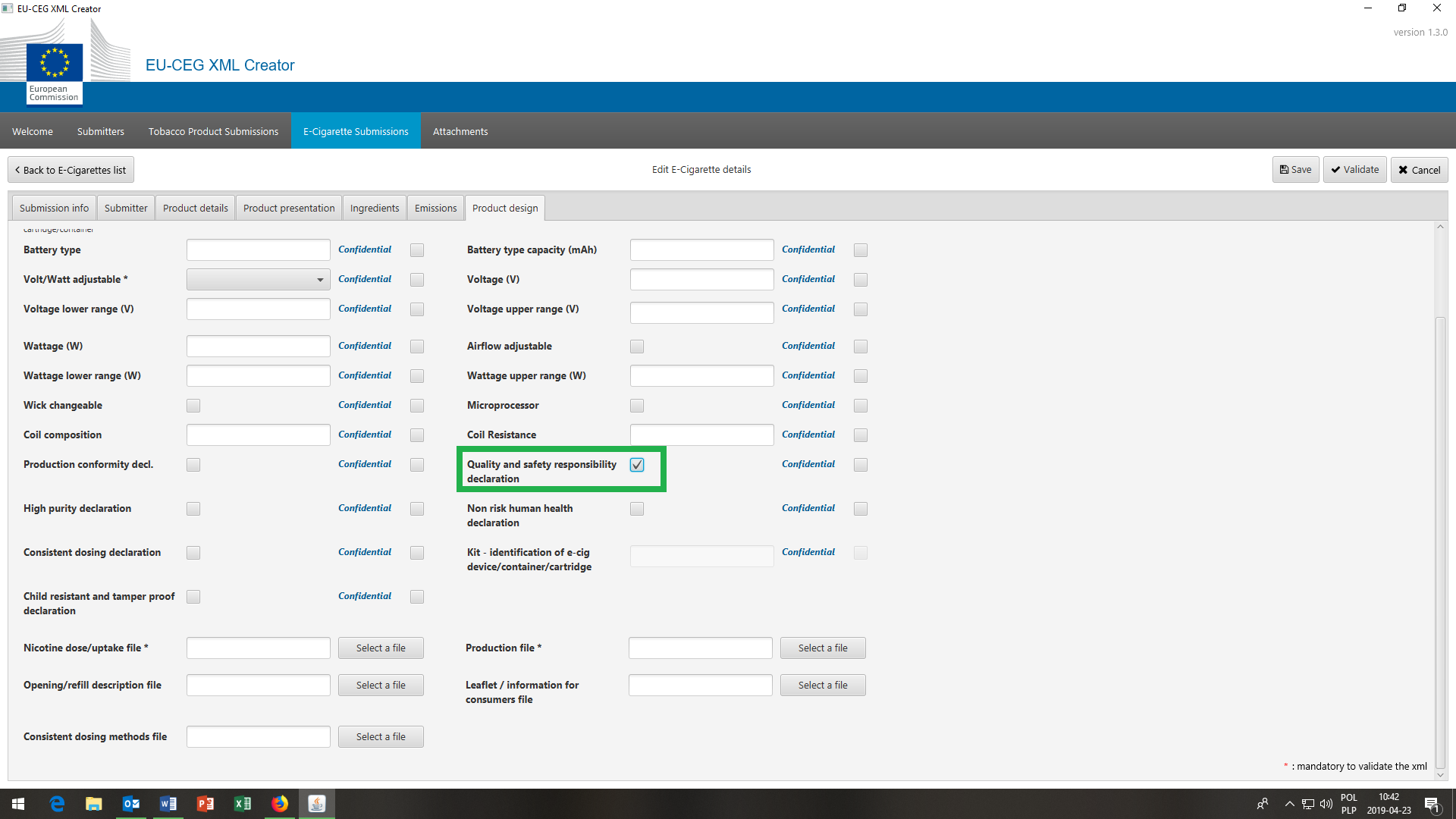 TPD-xml-creator–tool jest narzędziem, które służy do tworzenia zgłoszeń papierosów elektronicznych i pojemników zapasowych, jakie należy przekazywać w celu wypełnienia obowiązków nałożonych przepisami ustawy o ochronie zdrowia przed następstwami używania tytoniu i wyrobów tytoniowych.